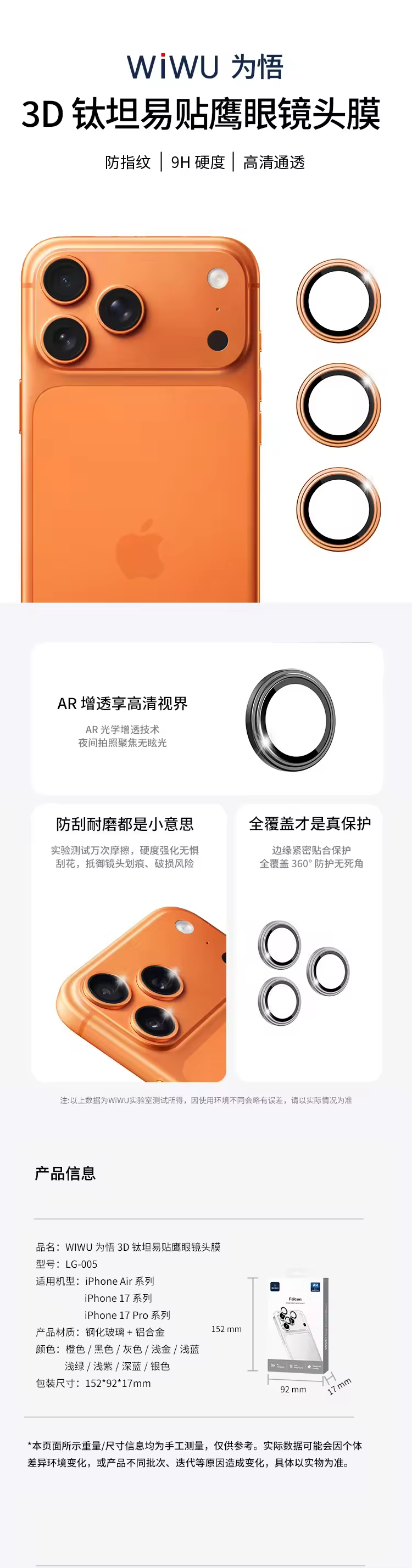 WIWU为悟 iPhone 17 3D 钛坦易贴鹰眼镜头膜