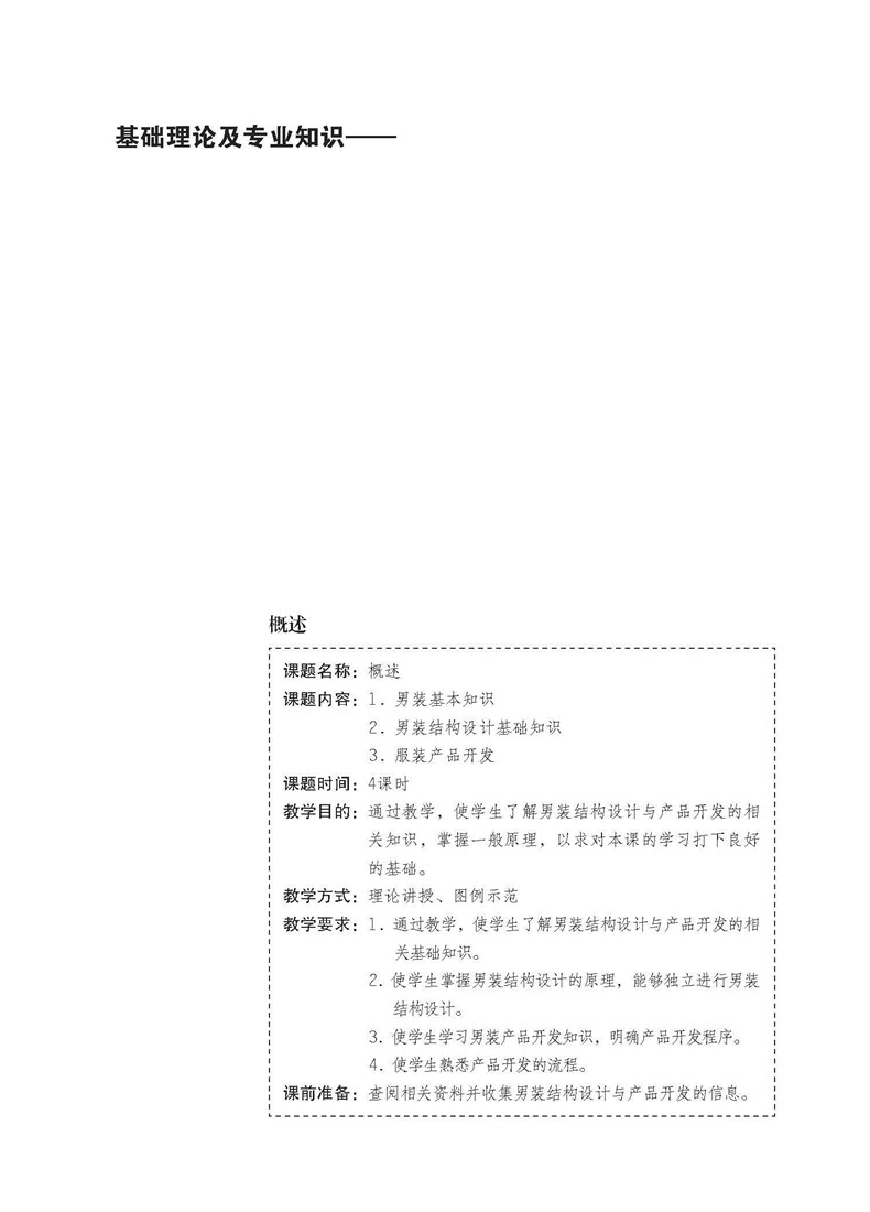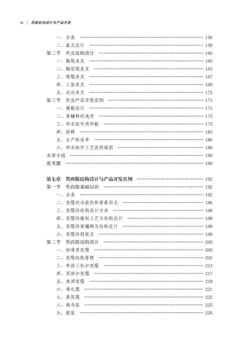 本书可供高等院校服装专业学生,男装企业技术人员、设计人员、企划人员和服装培训学校学习使用。本书也可配套《女装结构设计与产品开发》参考使用。