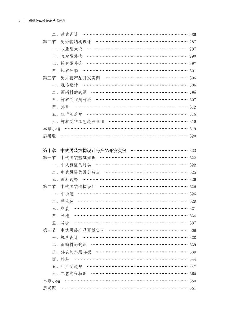 产品开发为主线,具体介绍了男装设计、产品开发及号型的