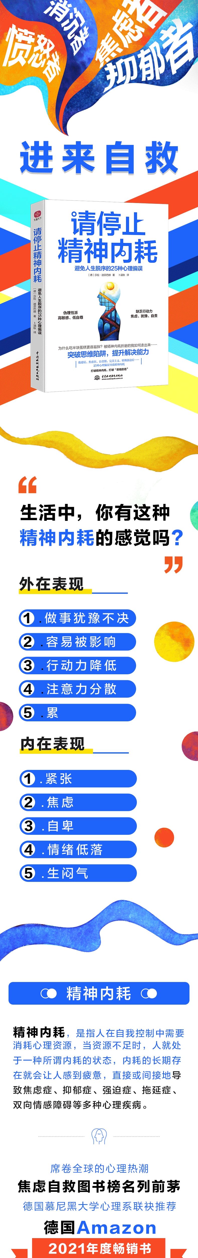 生活中,你有这种“精神内耗”的感觉吗? 主义,轻微强迫症 不自信,畏首畏尾 压力大,不知道怎么缓解压力 高敏感、想太多,却不敢表达 反内耗,反内耗! 打破精神内耗,做棒棒的自己! 走出舒适圈、打破鄙视链、不开地图 、不当替罪羊…… 高能量青年速成记:25种实用的心理练习送给不爽的你。