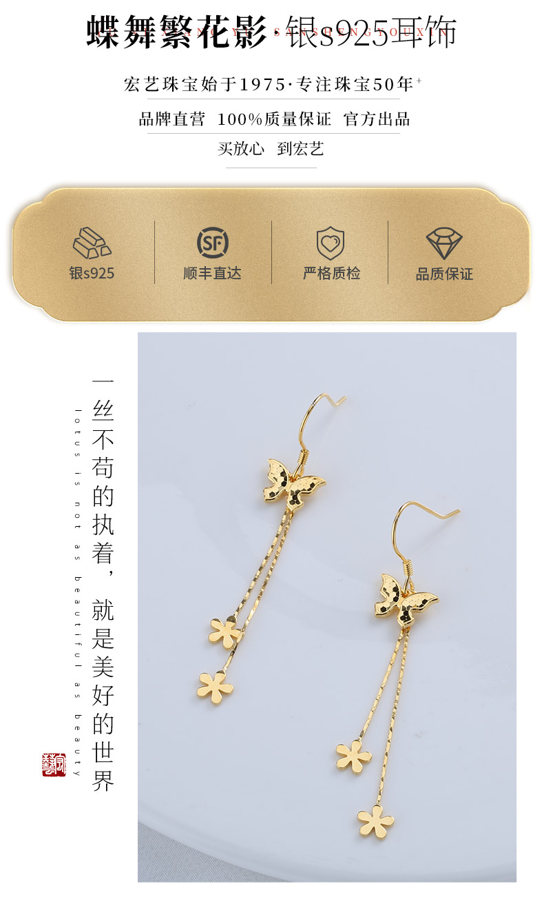 【宏艺珠宝】蝶舞繁花影·银s925耳饰