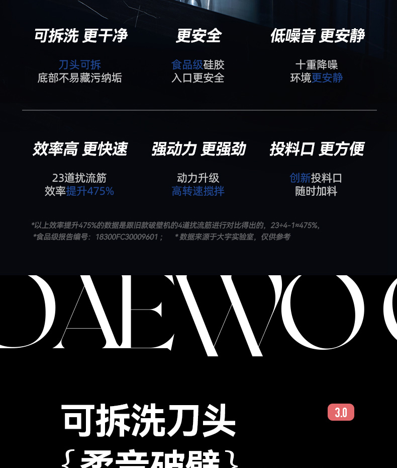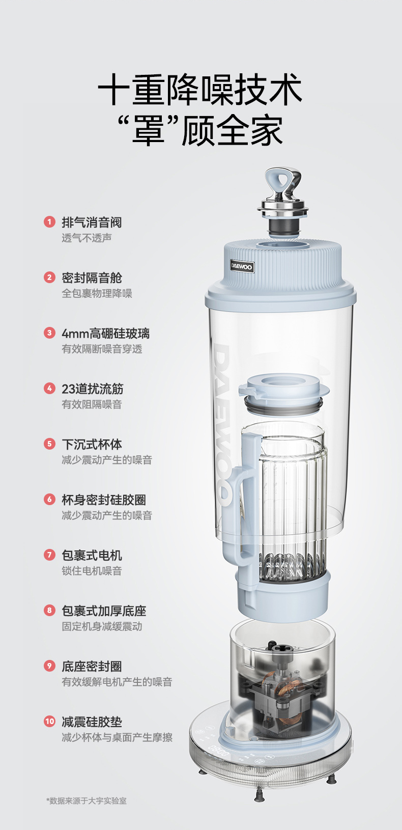 心选丨【官方自营】大宇可拆洗柔音家用破壁机多功能料理机