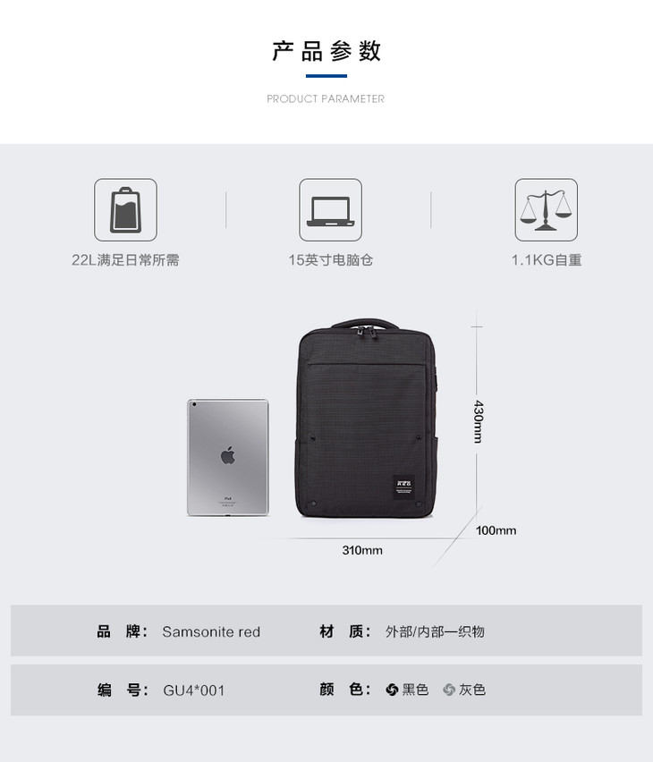 新秀丽电脑双肩包 多隔层多收纳 简约有型 随心搭配 GU4