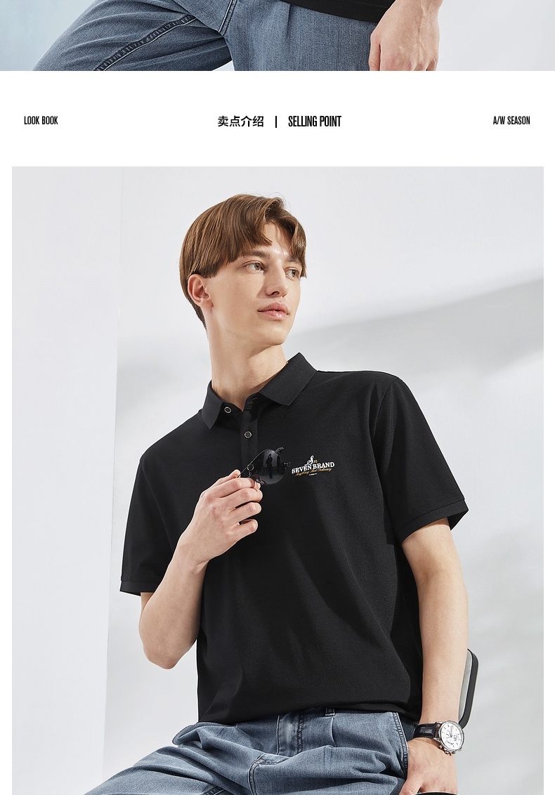 【3A抗菌】柒牌短袖男polo衫夏季薄款时尚休闲翻领百搭短T恤 124T70990