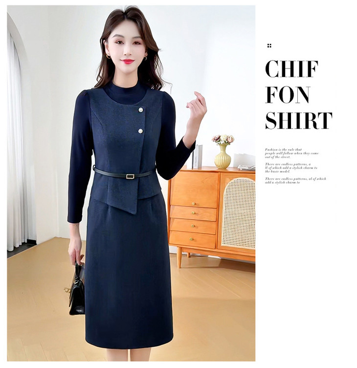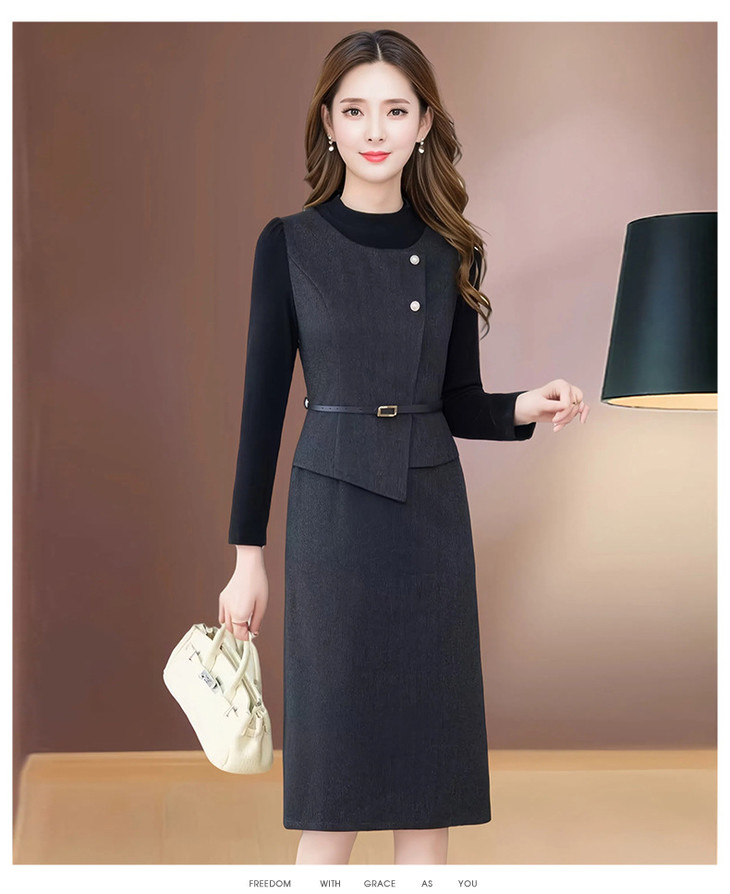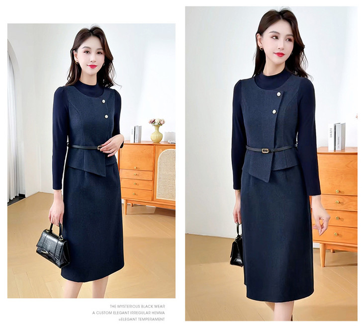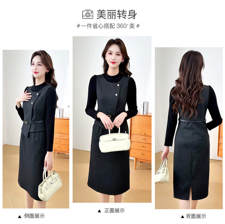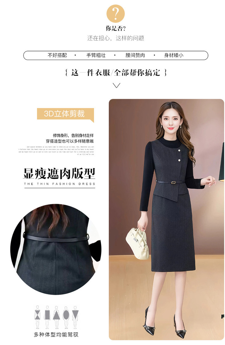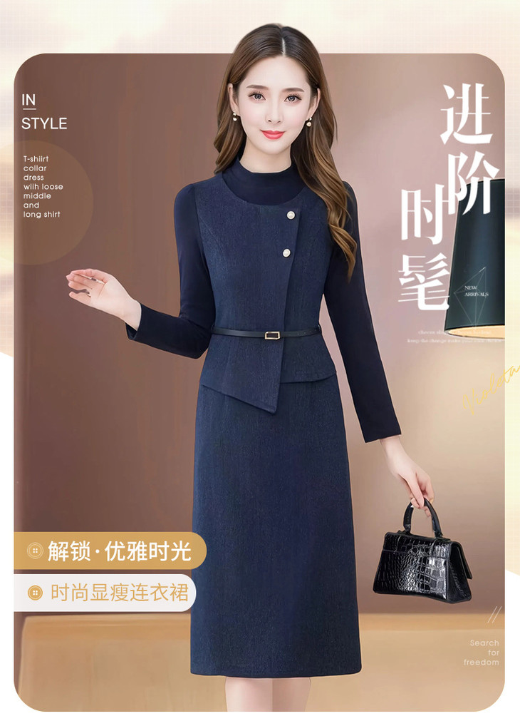 时尚优雅假两件连衣裙,韩版修身中长款女士裙子QYM-XYKL-SDB21