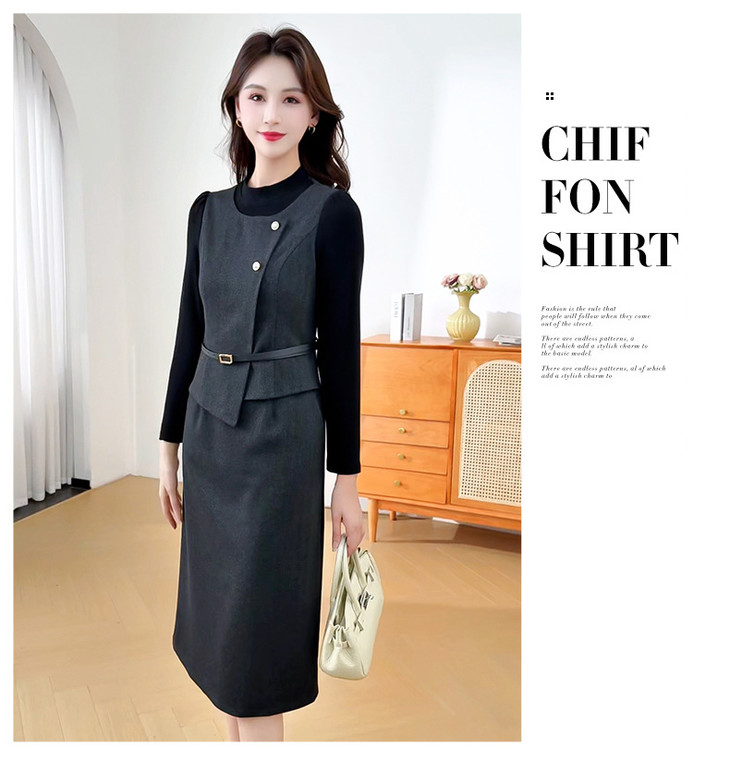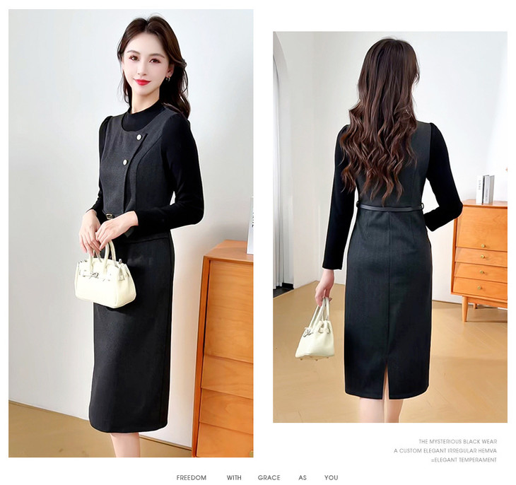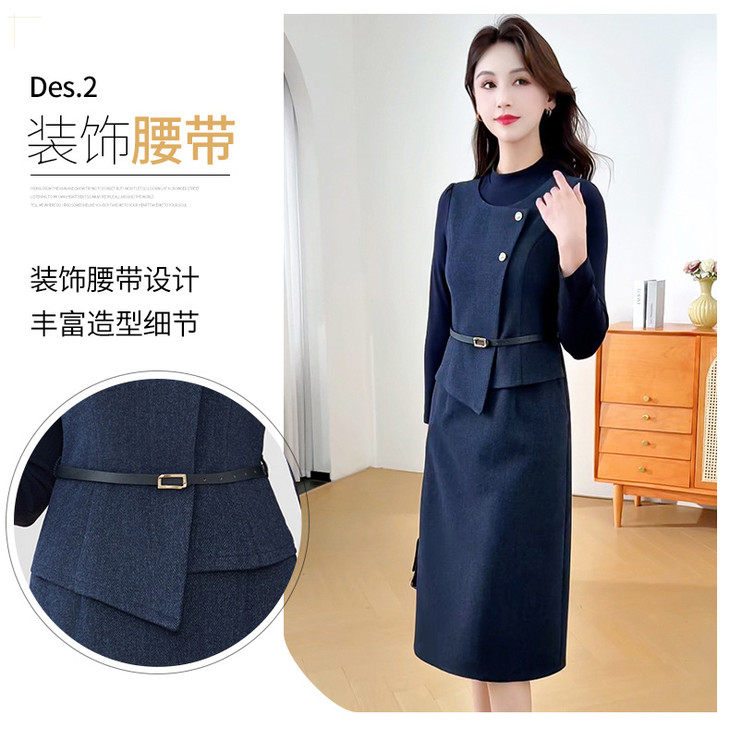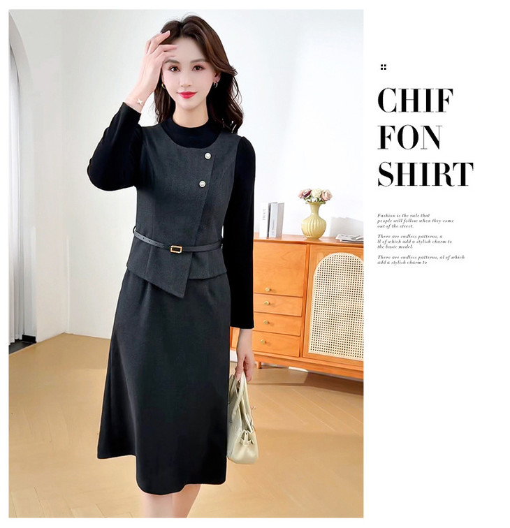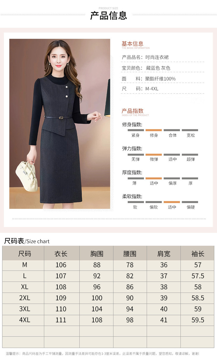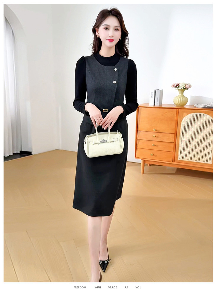 时尚优雅假两件连衣裙,韩版修身中长款女士裙子QYM-XYKL-SDB21