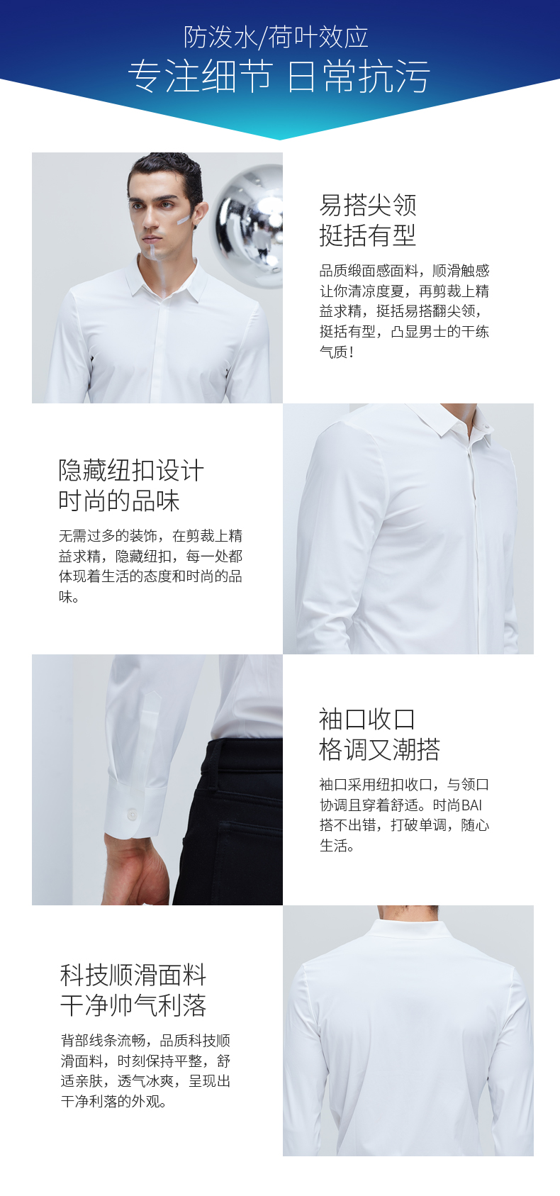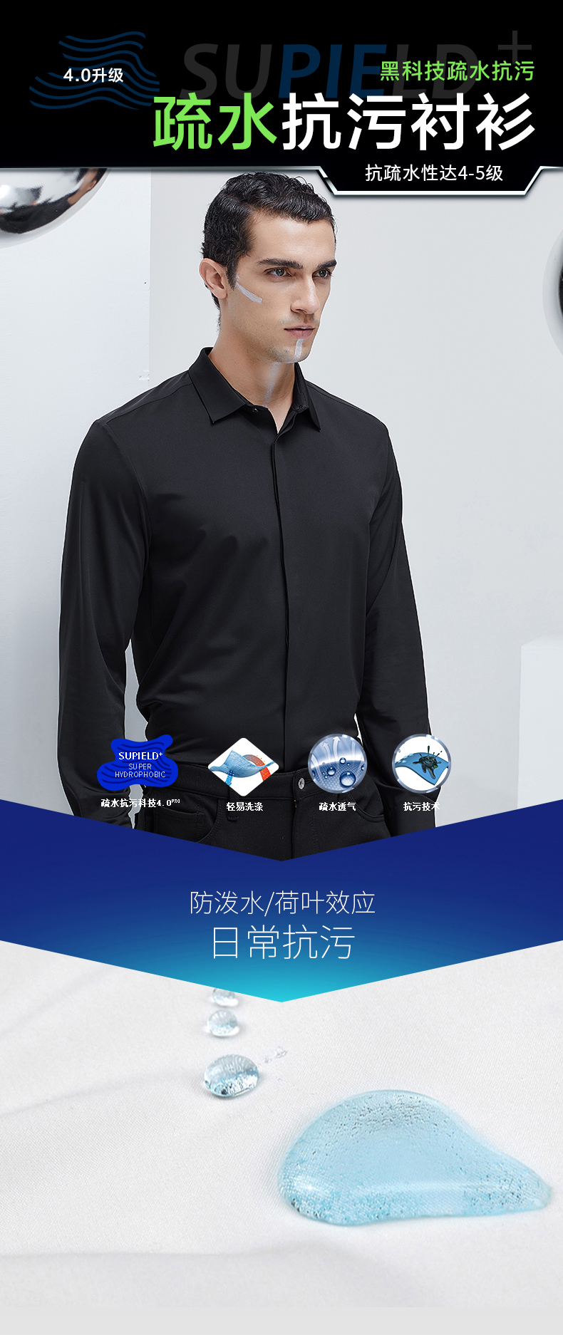 Supield素湃黑科技疏水抗污长袖衬衫男2021新款商务防污衬衣修身