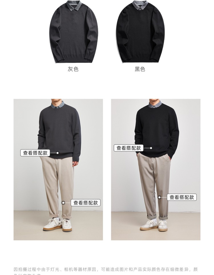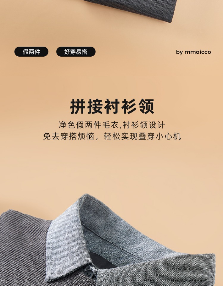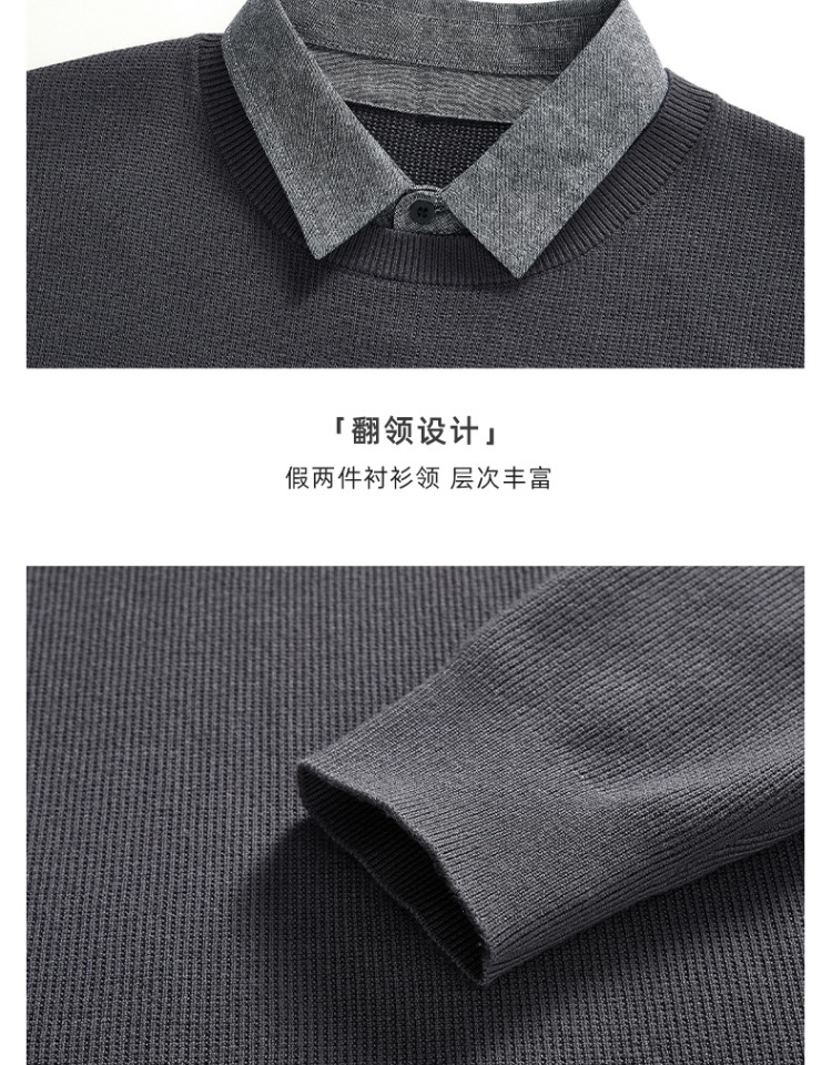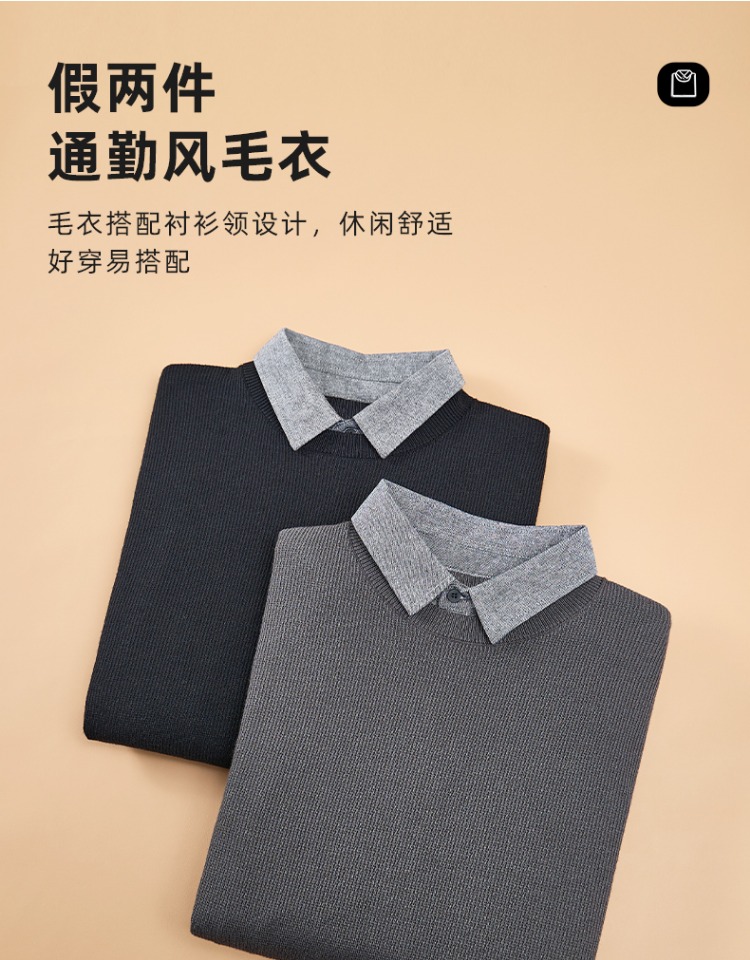 墨麦客男装秋冬季新款衬衫领假两件毛衣男士针织衫打底外套潮