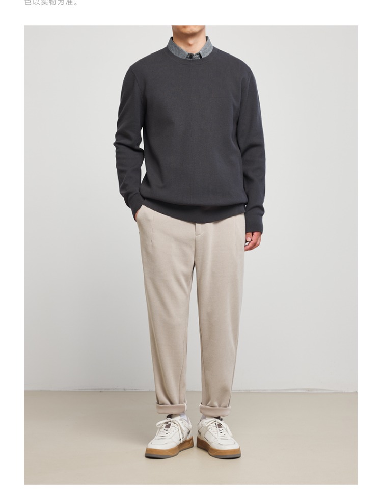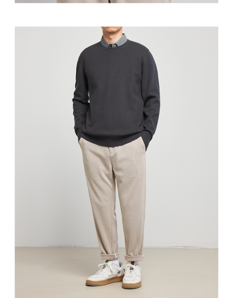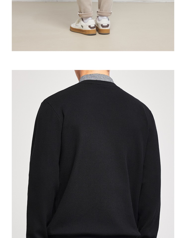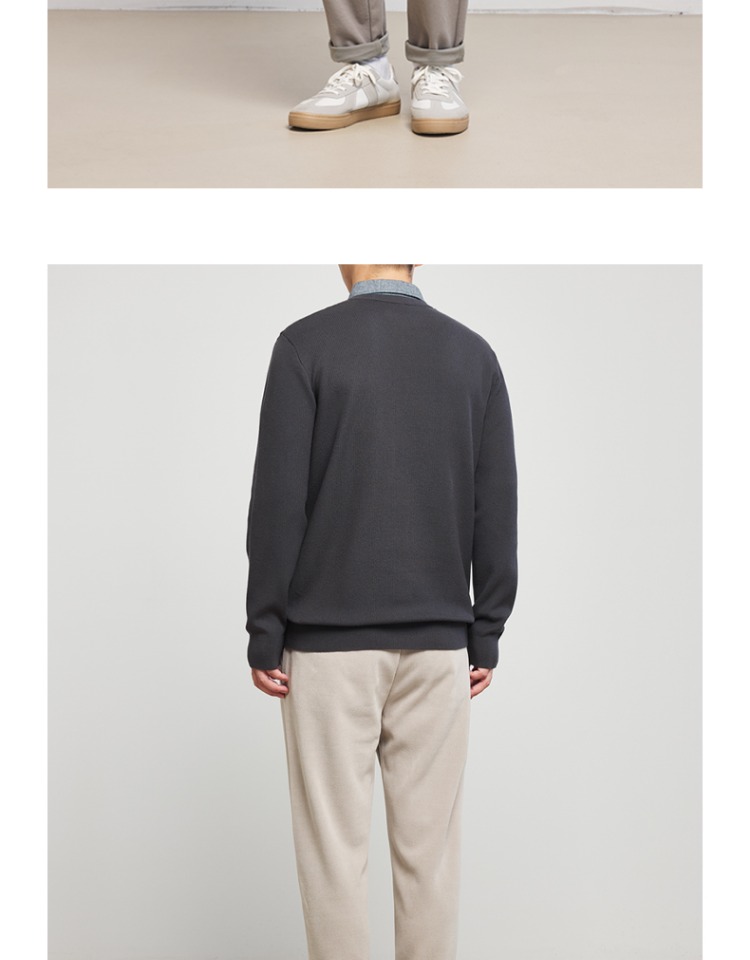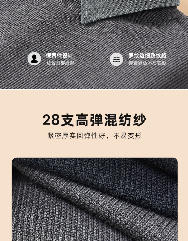 墨麦客男装秋冬季新款衬衫领假两件毛衣男士针织衫打底外套潮