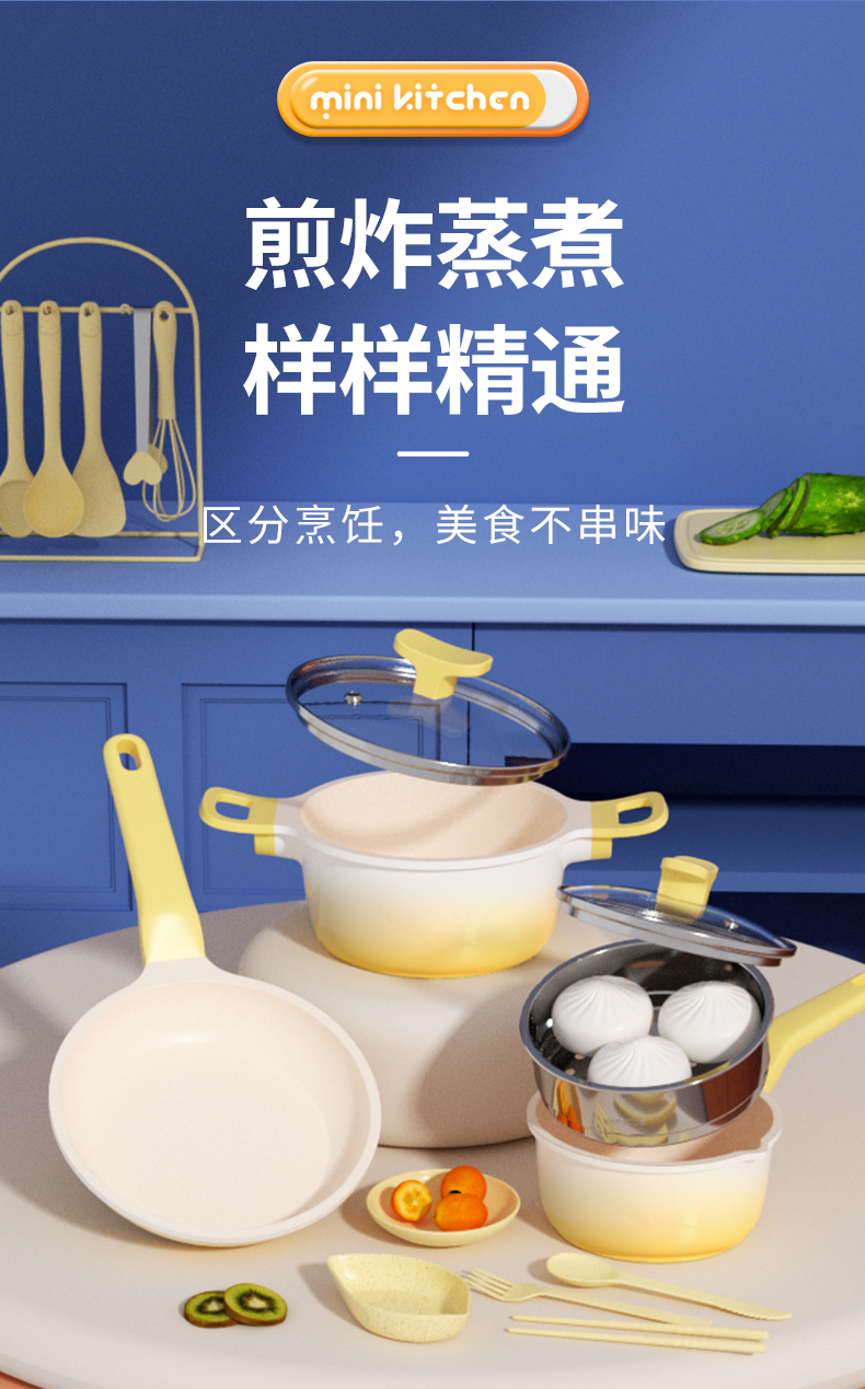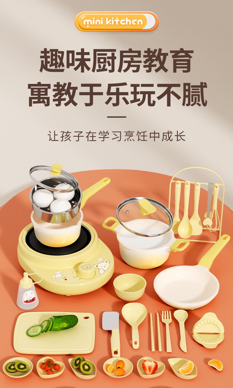 恩培 防烫抗菌迷你小厨房真煮全套玩具