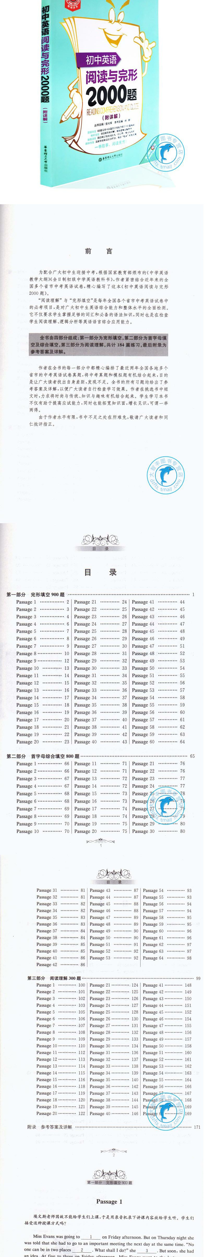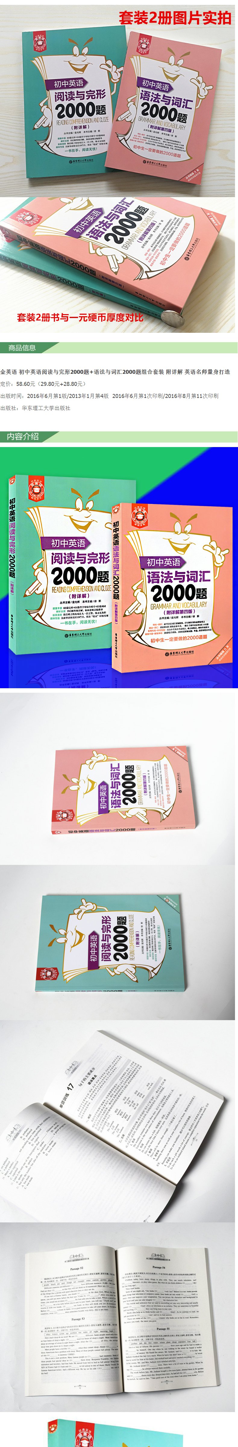 正版金英语 初中英语阅读与完形2000题+初中英语语法与词汇2000题 组合套装 附详解 华东理工大学出版社初中英语词汇语法完形阅读
