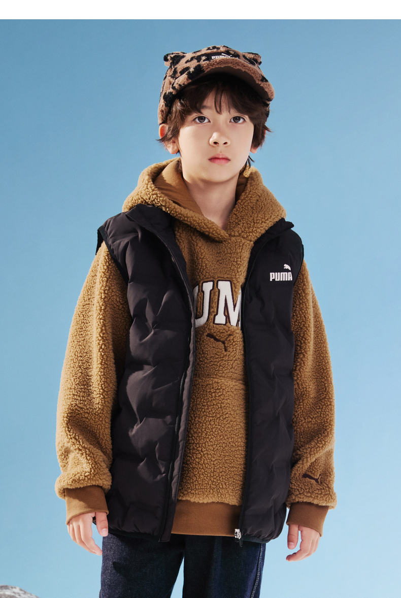 PUMA彪马官方正品 新款儿童冬季羽绒马甲时尚压花锁温保暖