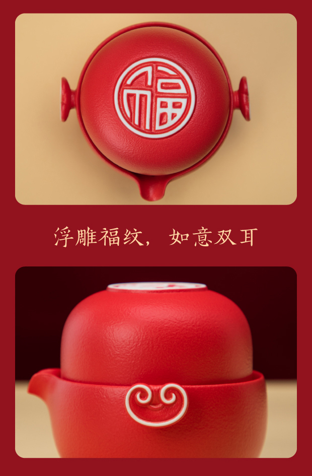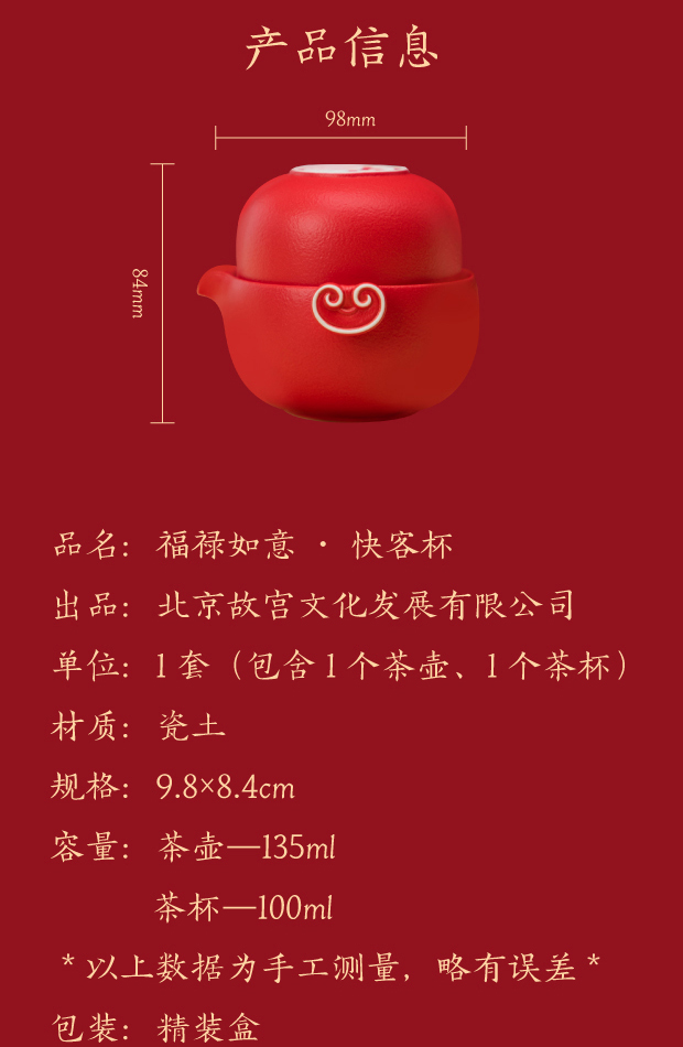 【故宫·茶具】如意福禄随身便携式快客杯一壶一杯旅行茶具套装礼物