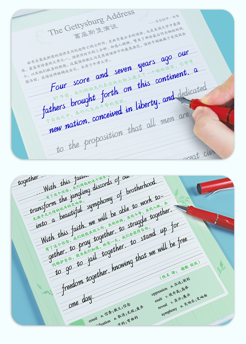 墨点字帖【每天写一篇美丽英文】系列英语字帖意大利斜体临摹练字大学生高中英语练字帖