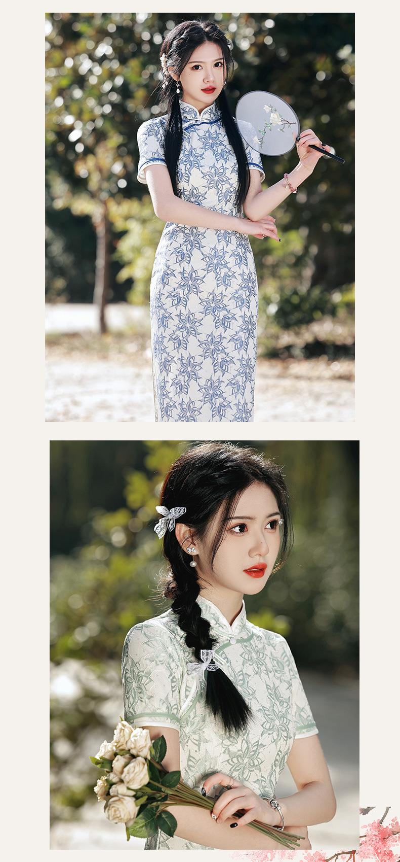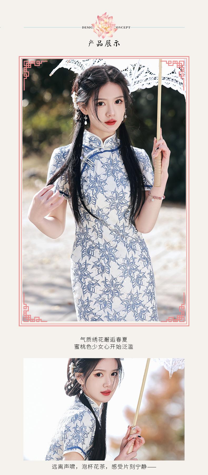 2023春夏新款复合蕾丝中长款旗袍连衣裙清新文艺日常改良少女旗袍