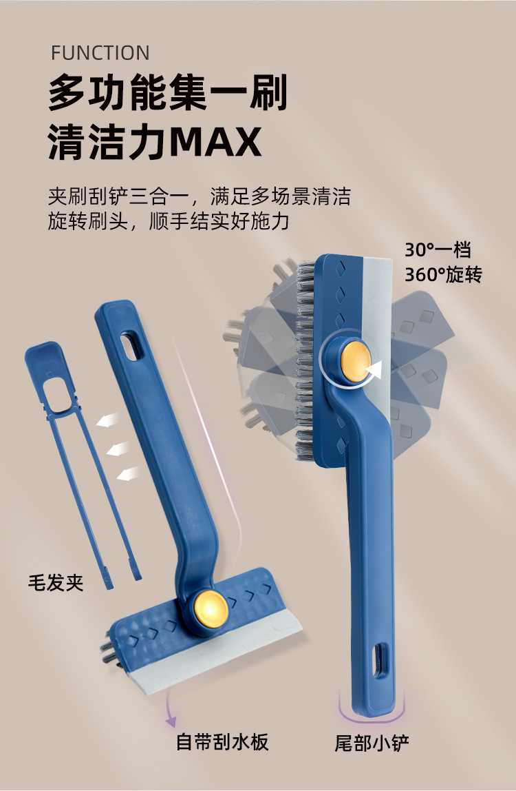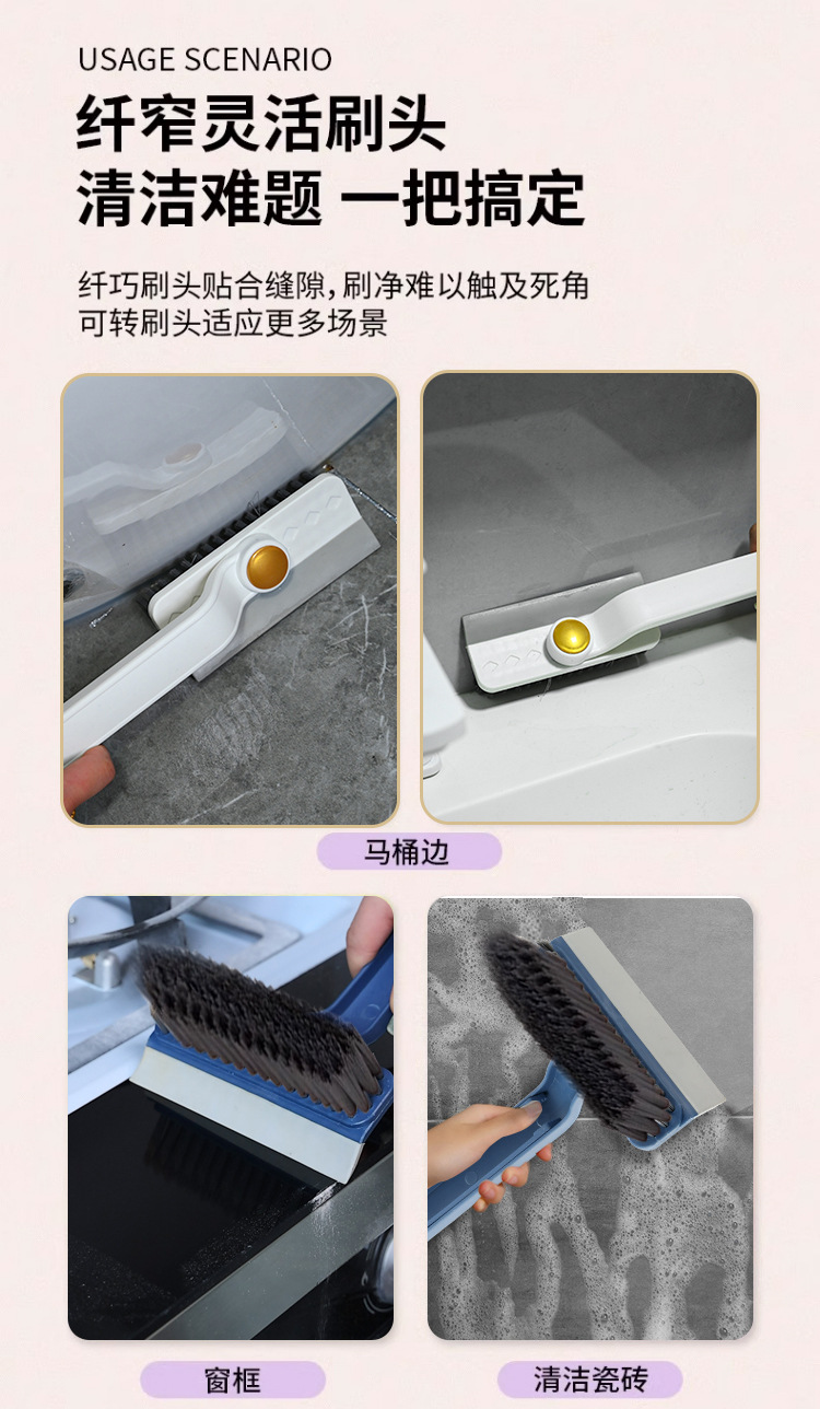 【刷 刮 夹 铲一体!360°多功能清洁刷】硬毛家用浴室瓷砖无死角二合一缝隙清洁刷地缝刷墙刷。ry