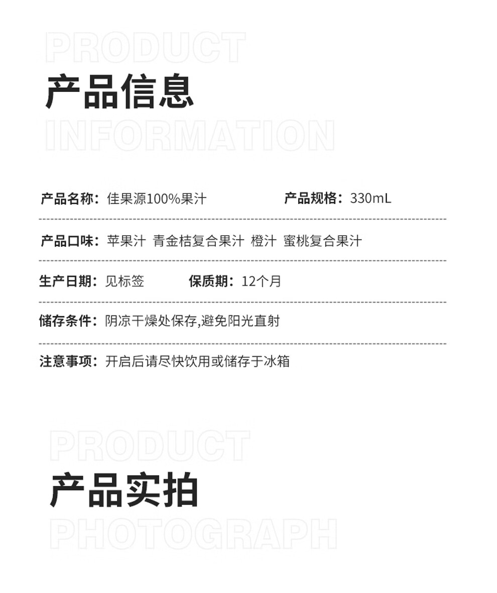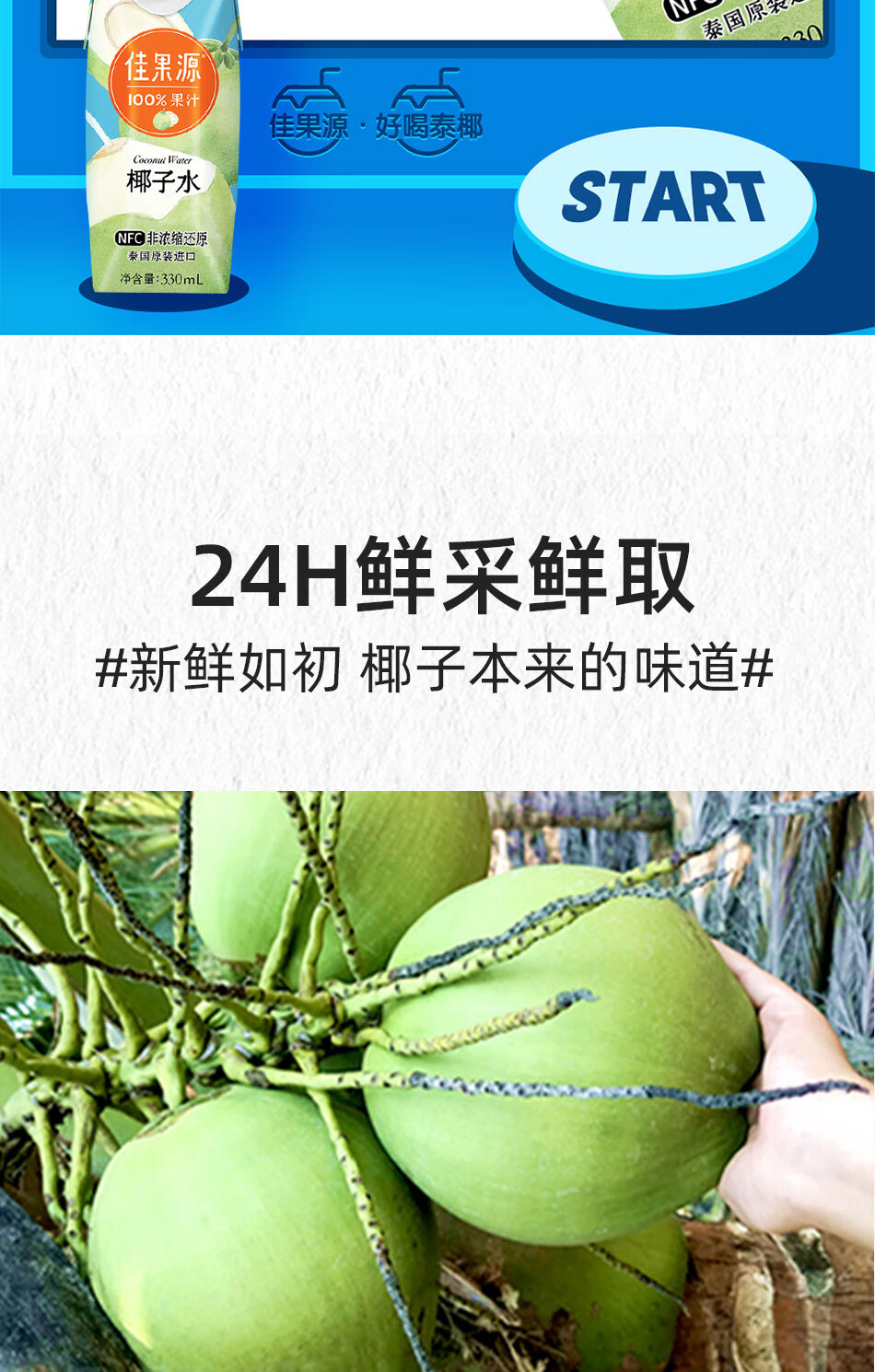 佳果源100%NFC椰子水330ml*12瓶/箱