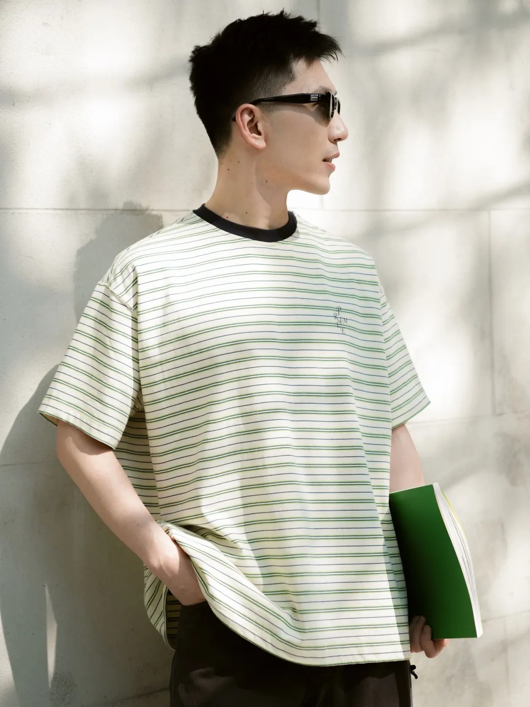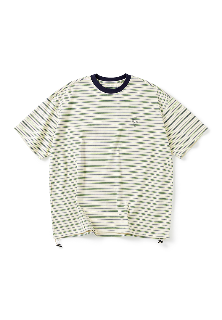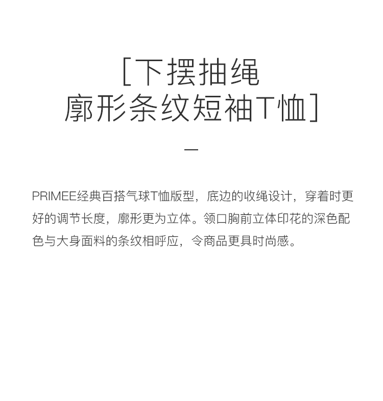 PRIMEE 下摆抽绳廓形条纹短袖圆领T恤