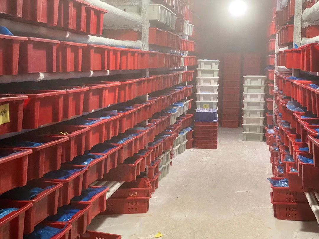 加工完毕后,进入超低温冷冻库进行单冻储存
