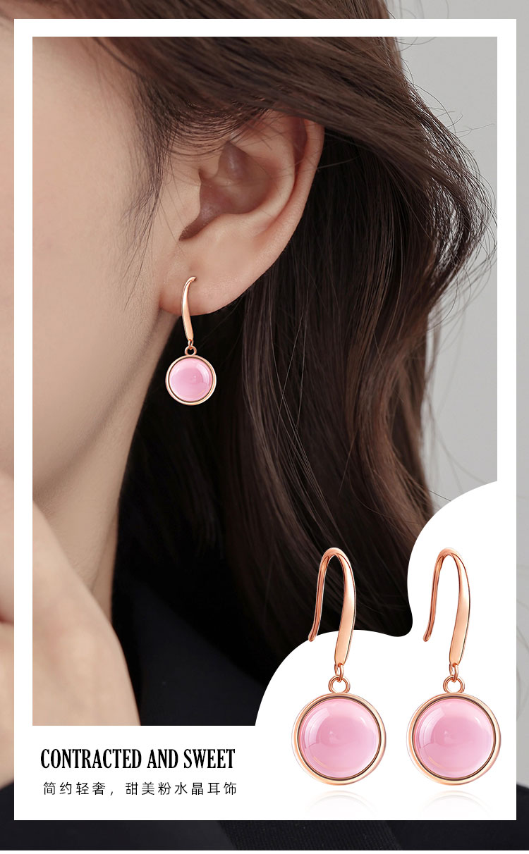 【粉水晶耳环】耳坠女天然粉水晶S925银耳饰品时尚轻奢芙蓉石耳钉JE25001