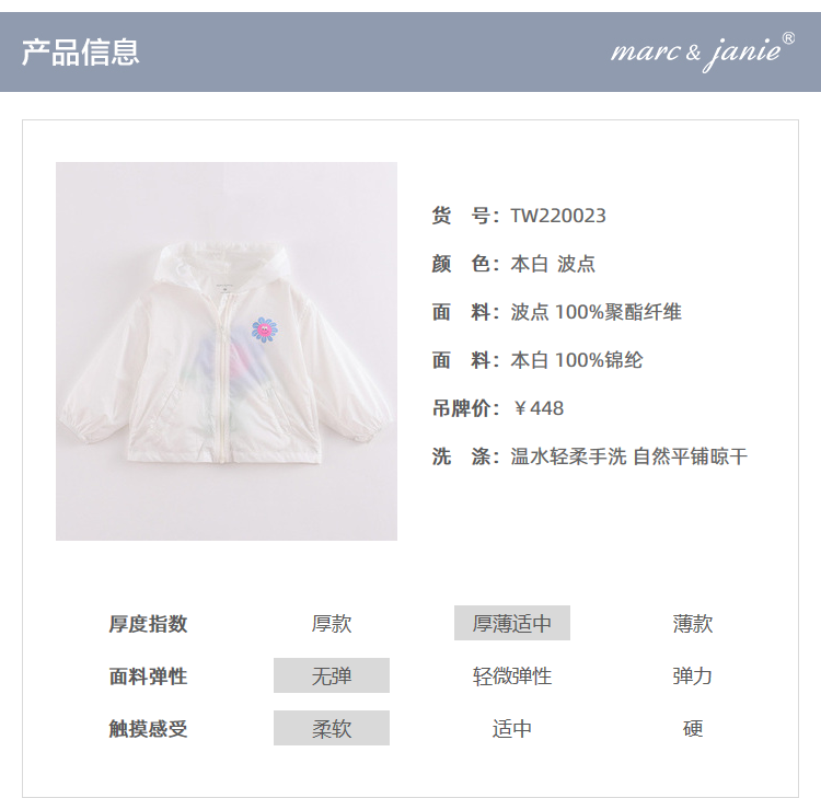 【打折】【真正防紫外线】马克珍妮夏装 女童儿童轻盈防晒衣220023