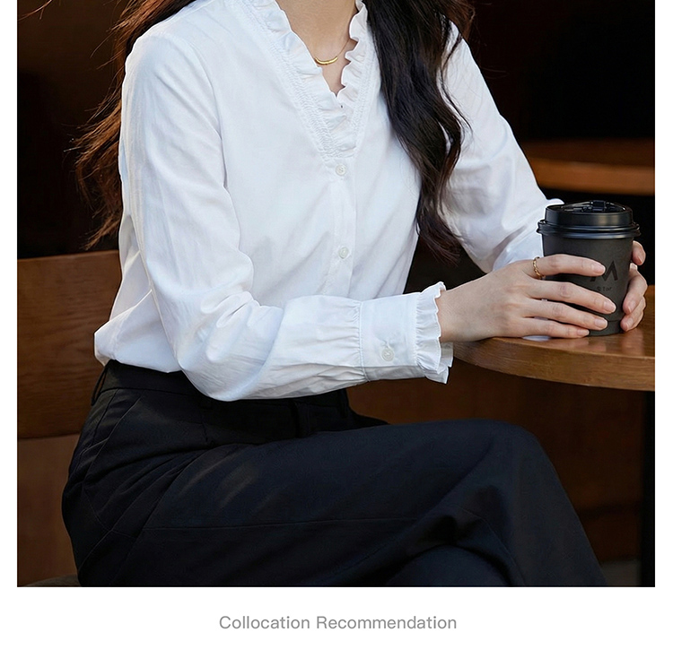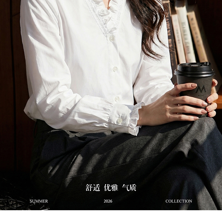 米思阳2026春季新款法式优雅风减龄花边领衬衫宽松直筒上衣女4374