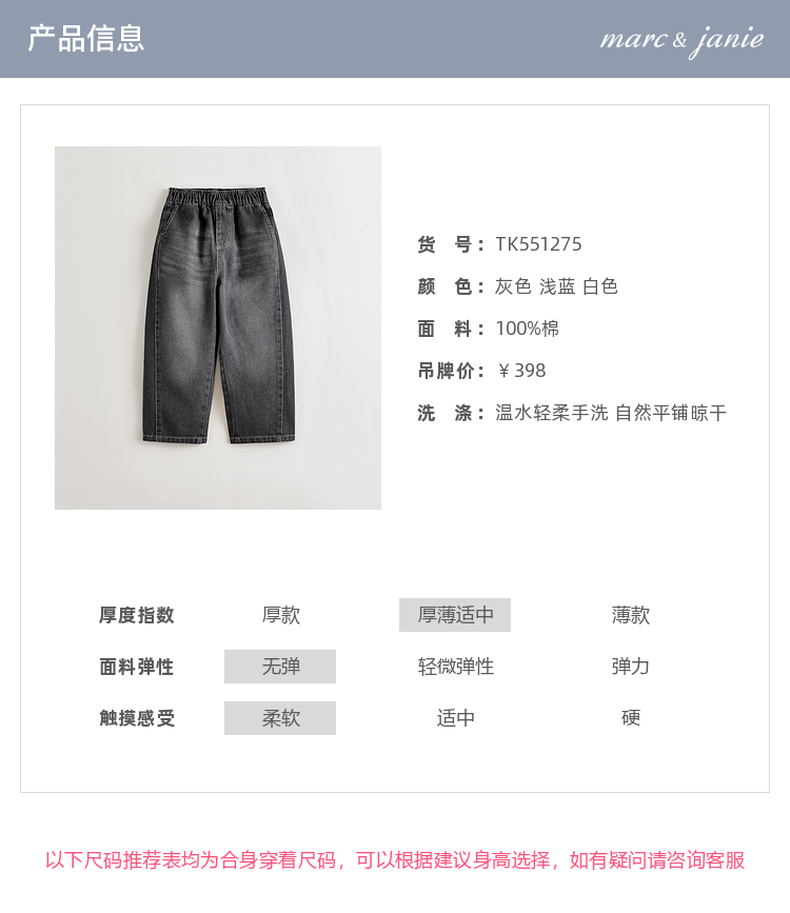 马克珍妮男童时尚百搭牛仔萝卜裤2025年秋装新款551275