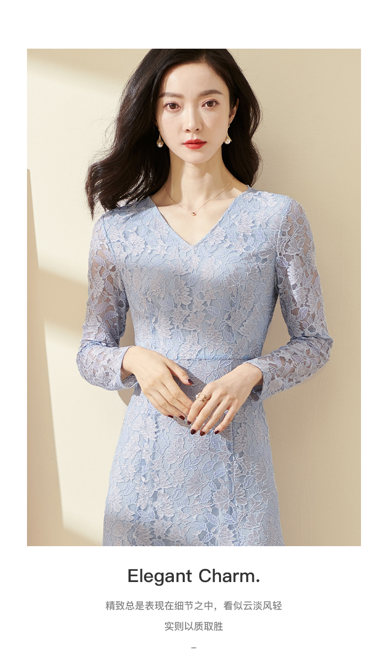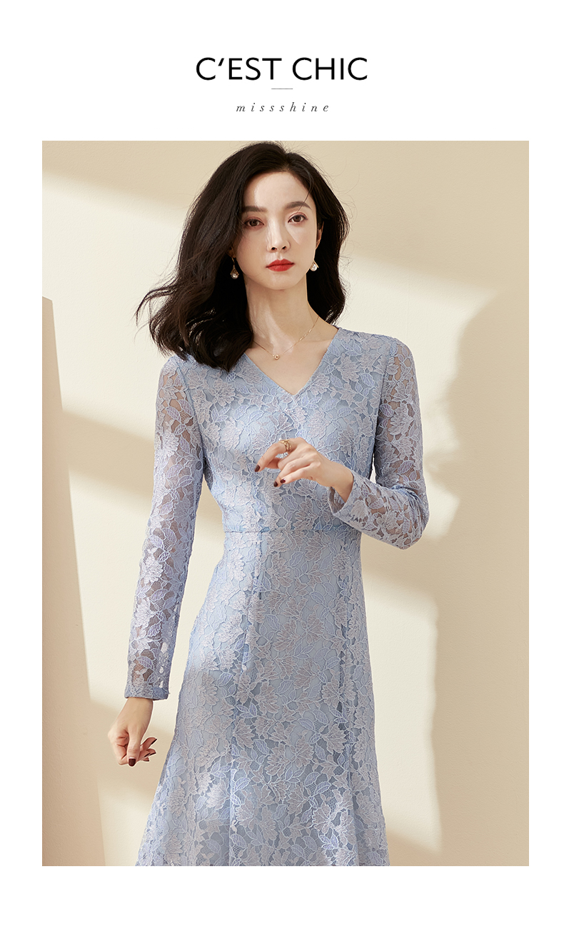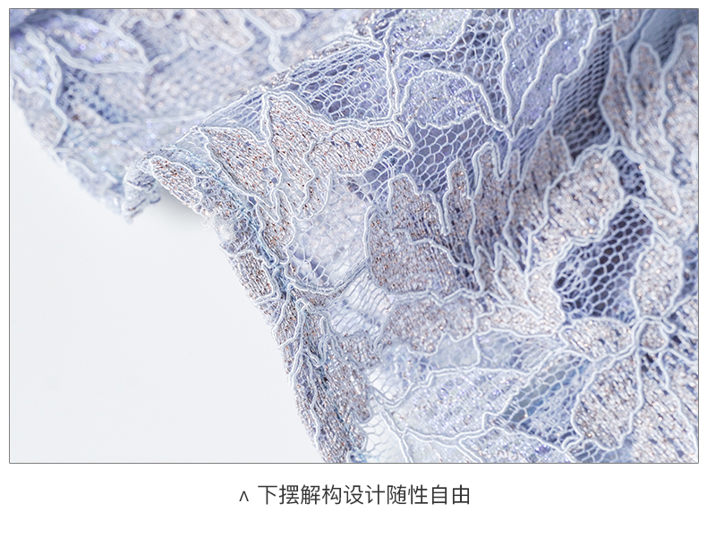 剩M/L/XL 米思阳2026春季新款优雅气质金葱刺绣蕾丝中长裙鱼尾连衣裙0076