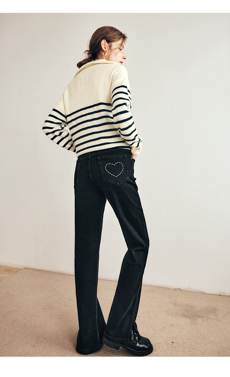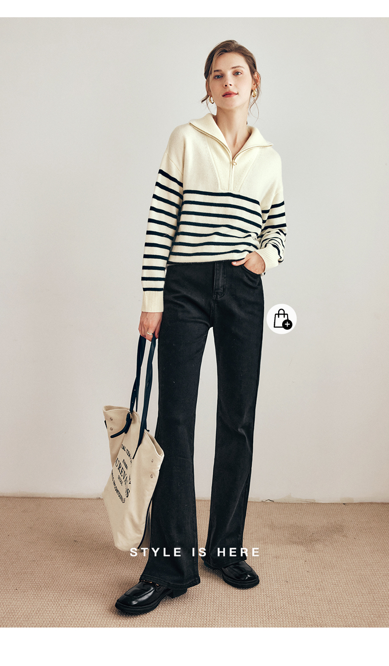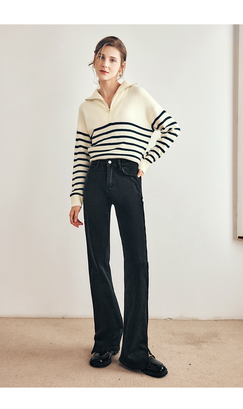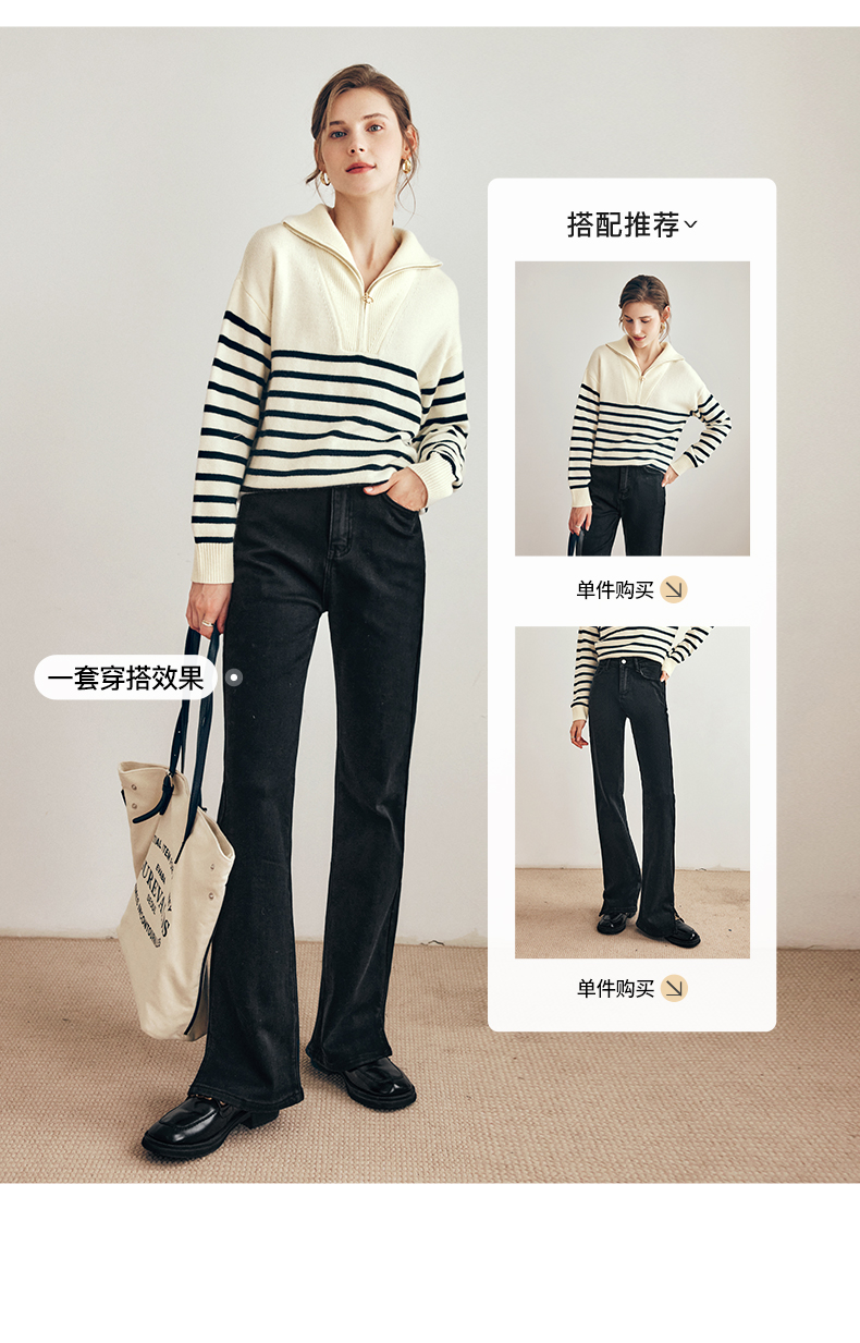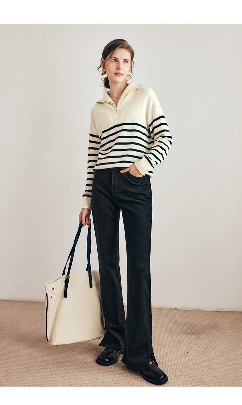 OLrain欧芮儿法式黑白条纹毛衣女秋季2023年新款两穿半拉链针织衫