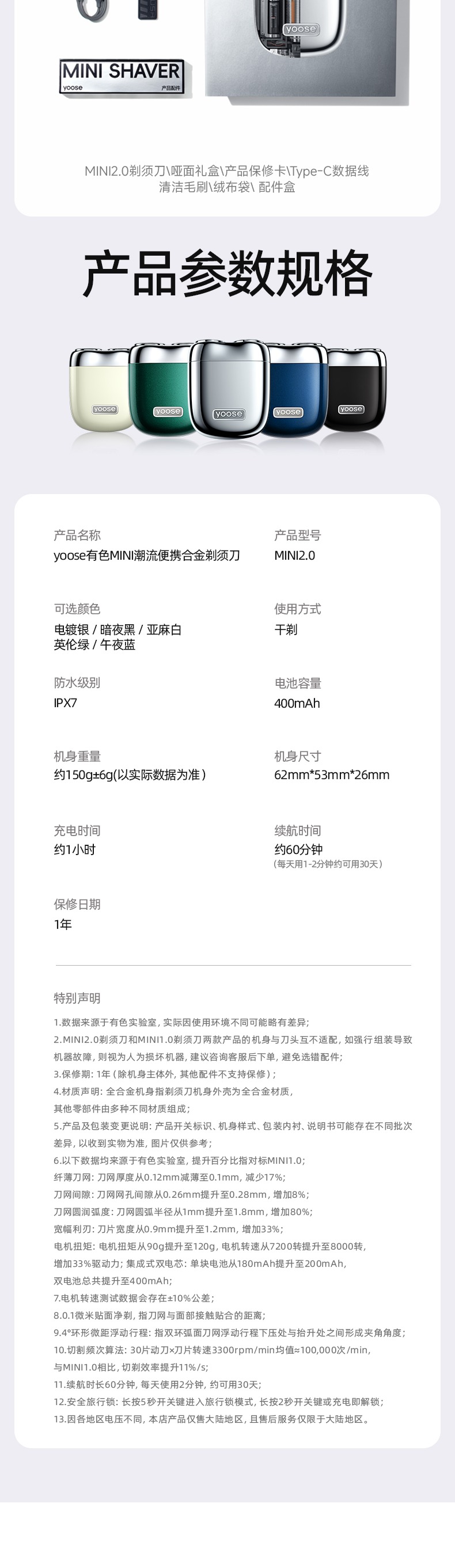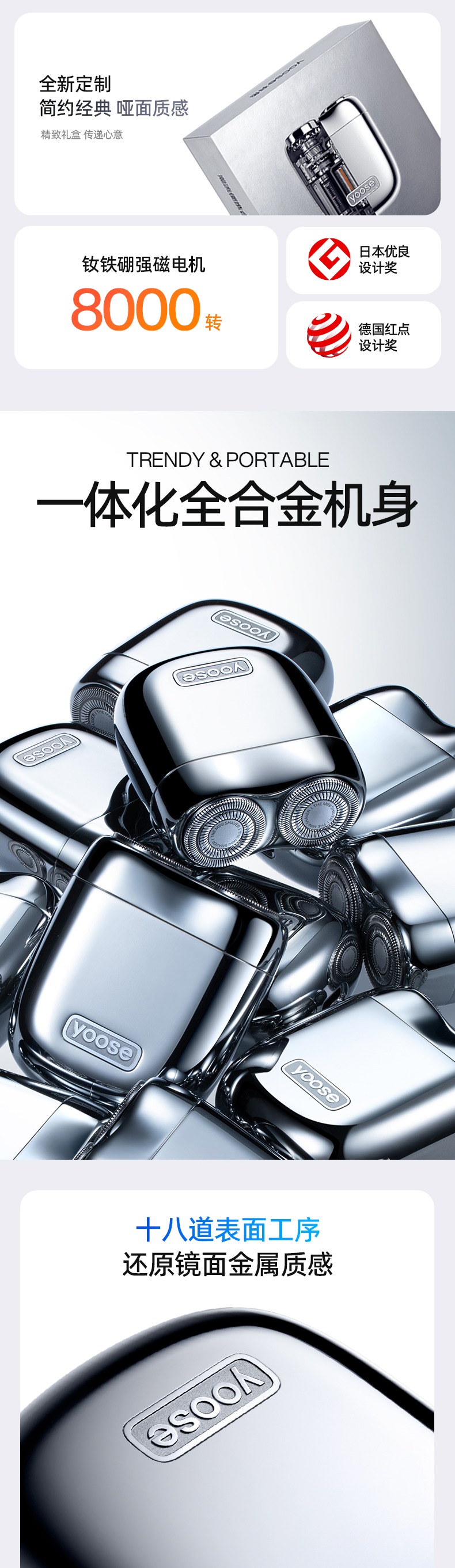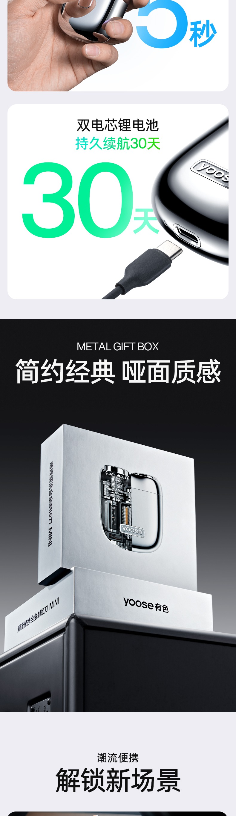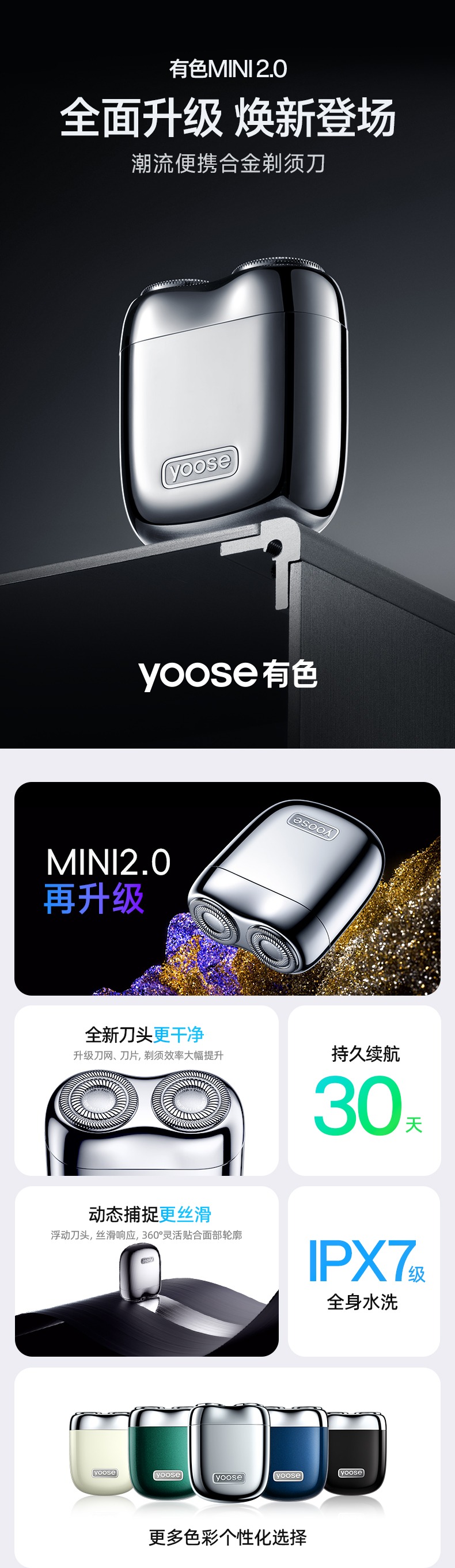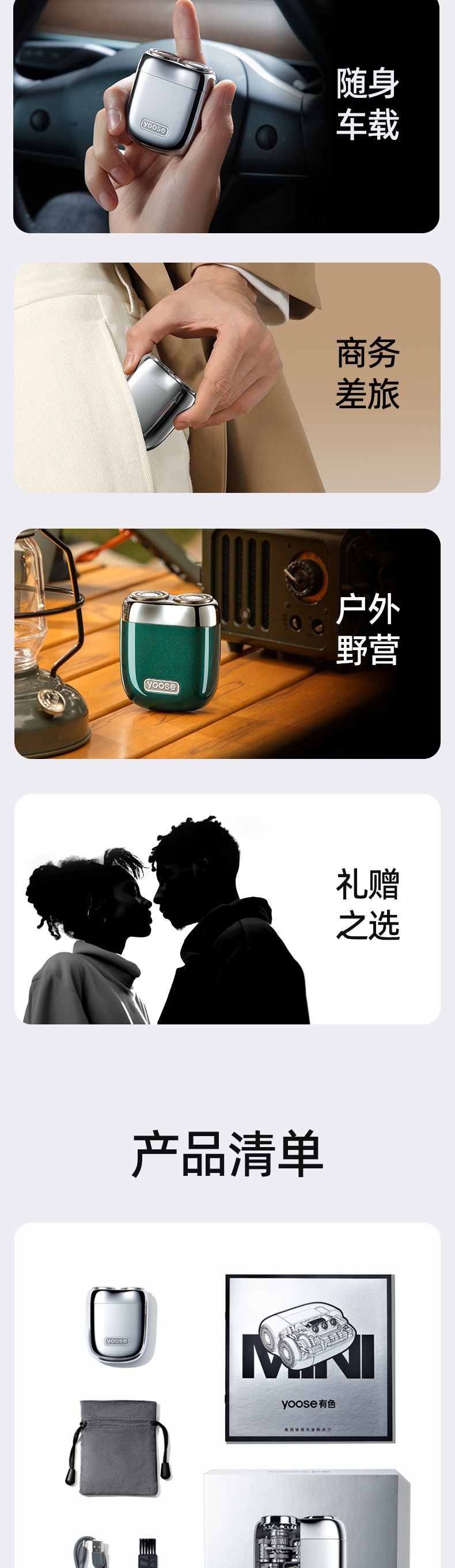 yoose有色剃须刀电动便携刮胡刀送男友礼物胡须刀