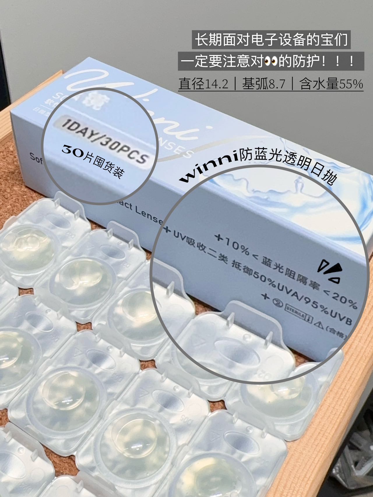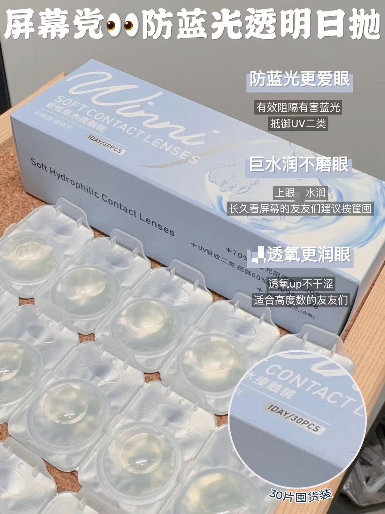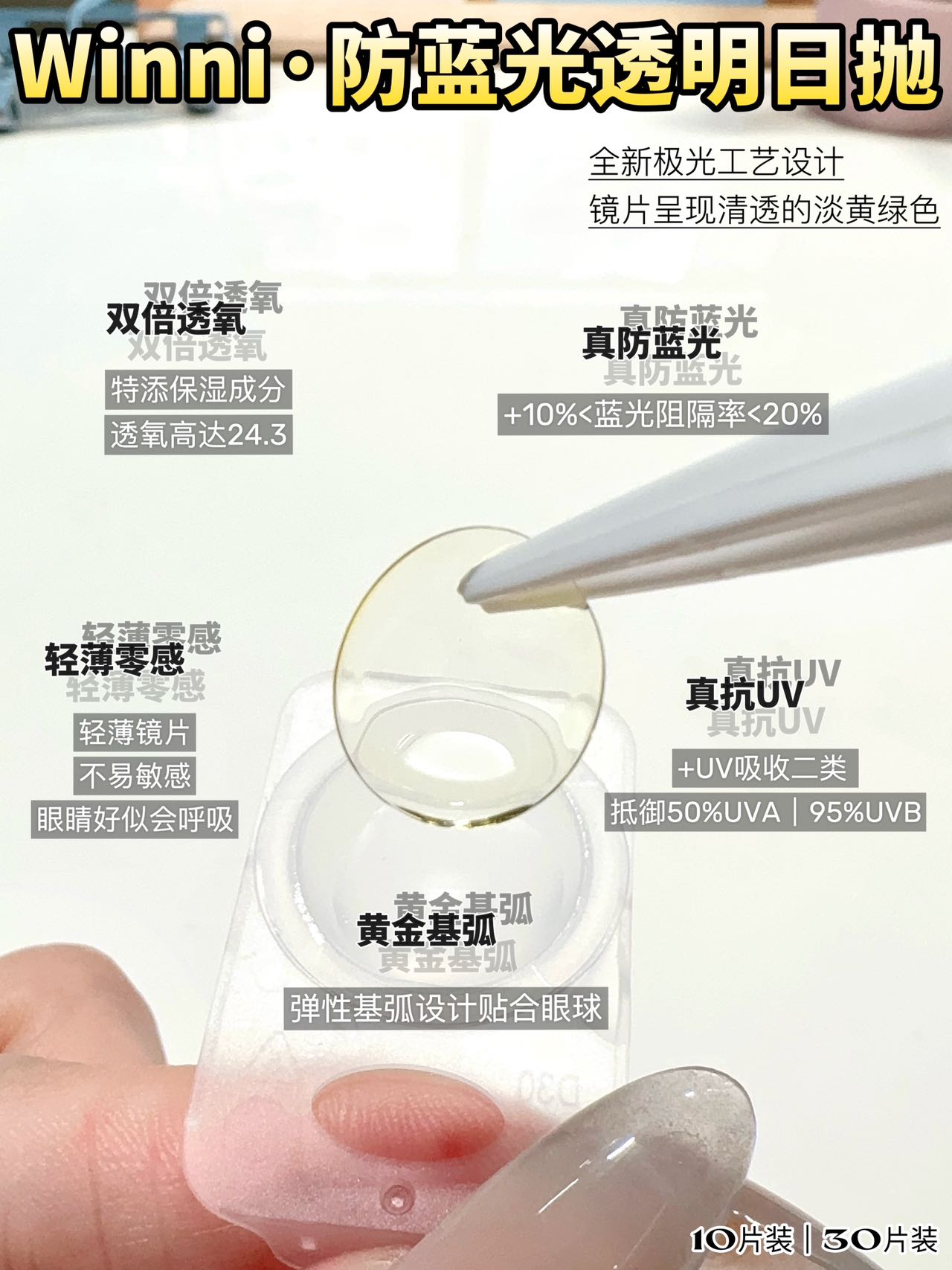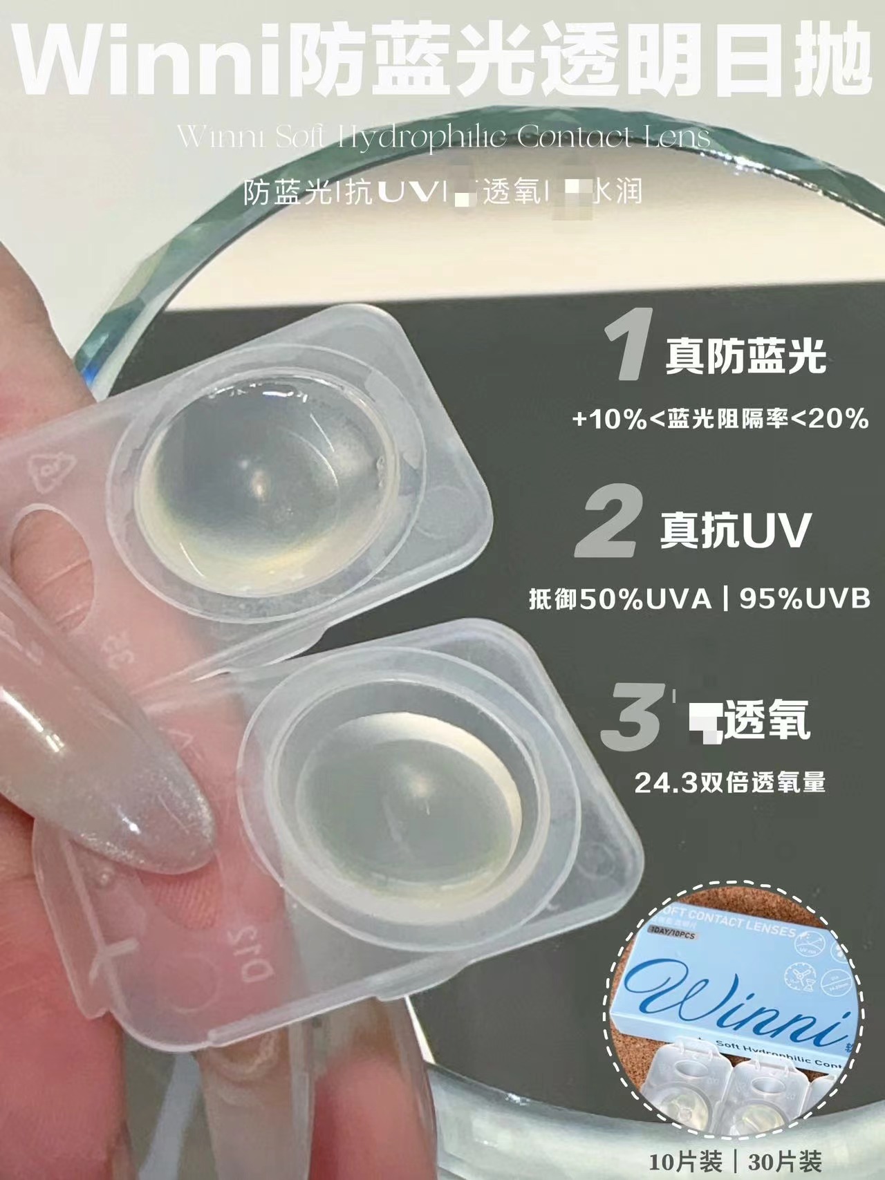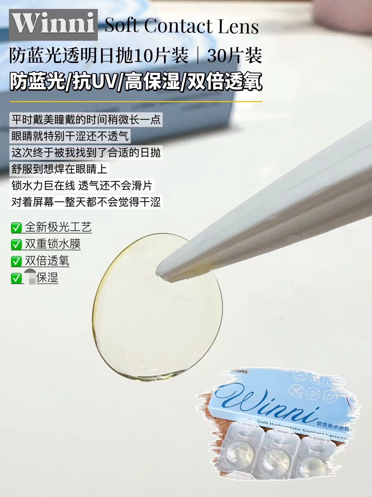 Wiinni日抛·防蓝光透明片·透氧率超国标达24.3dk/t(10片/30片装两种规格)