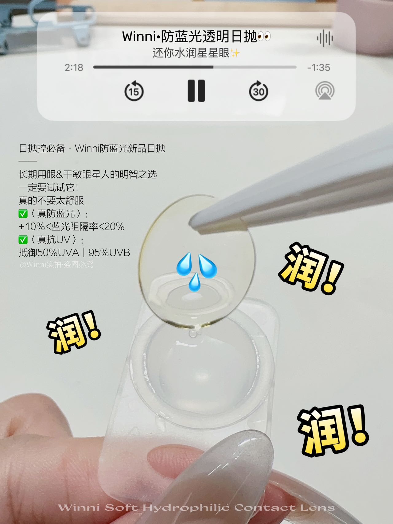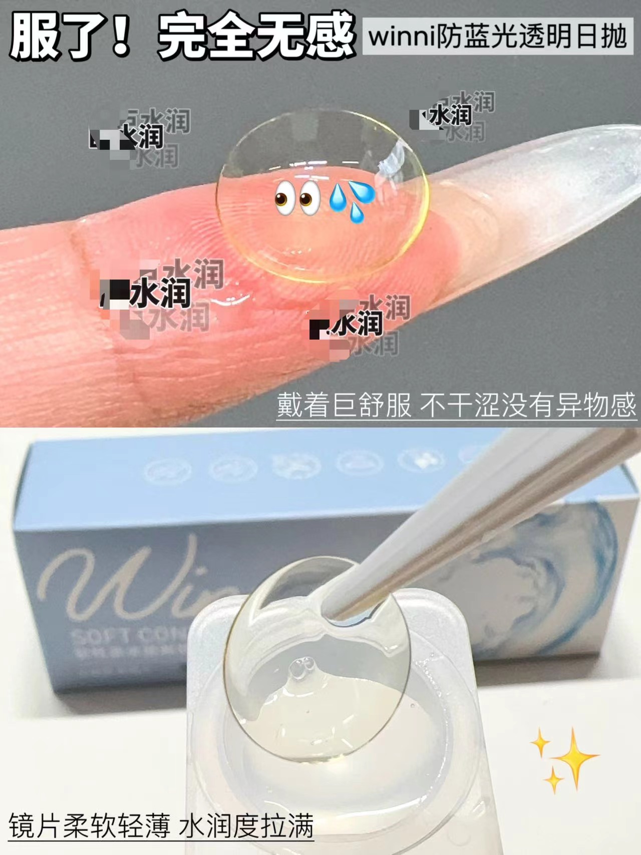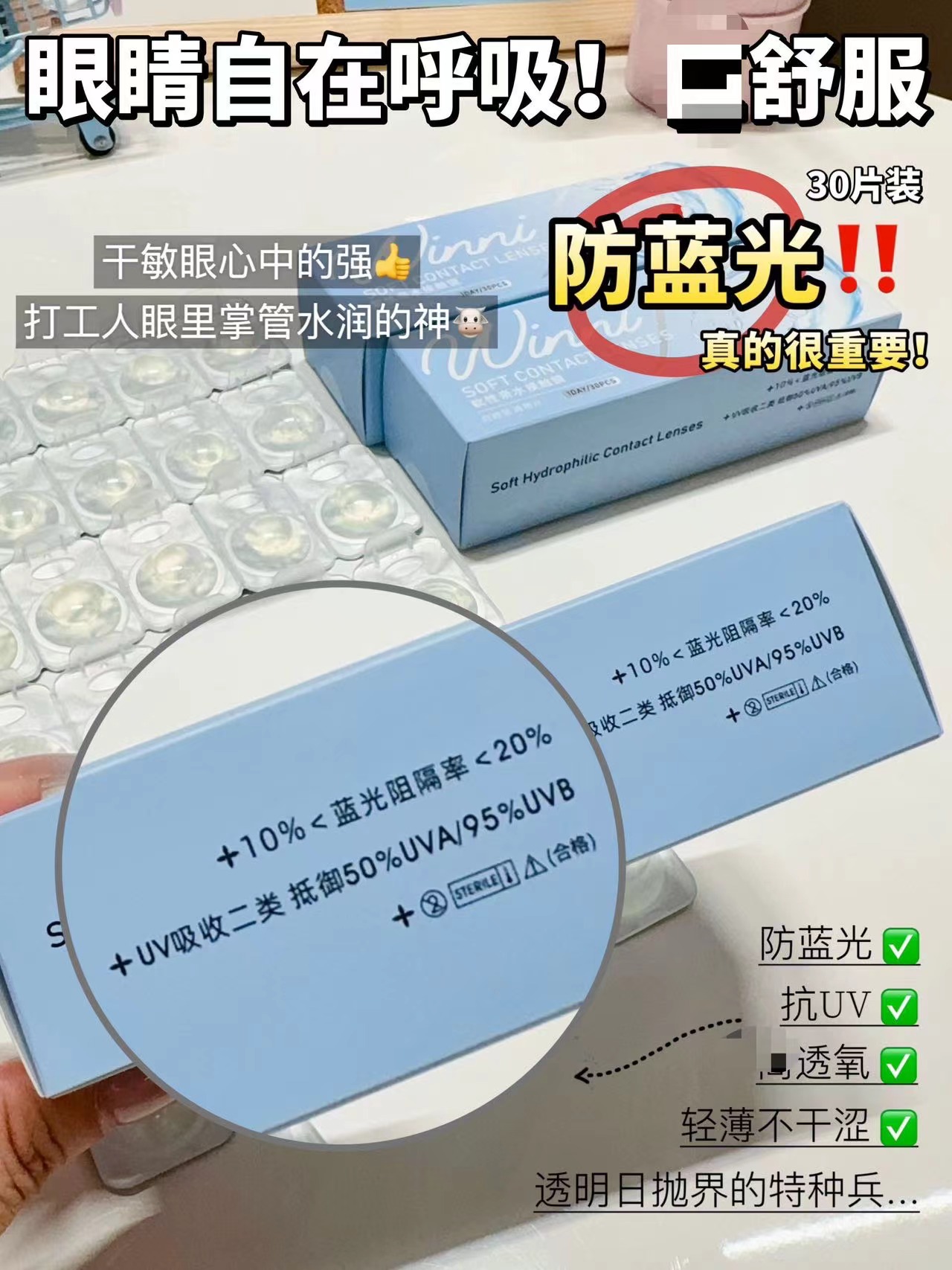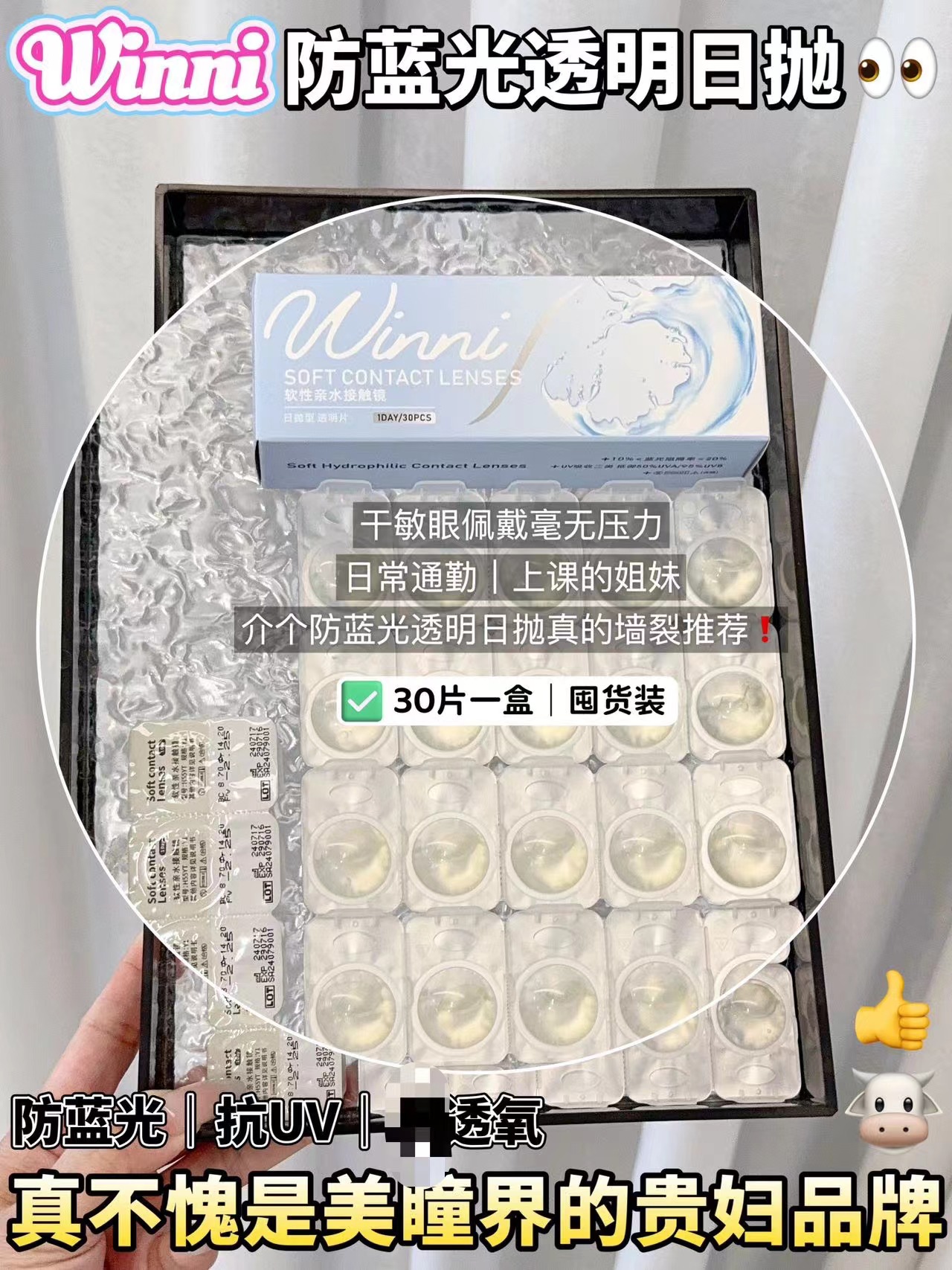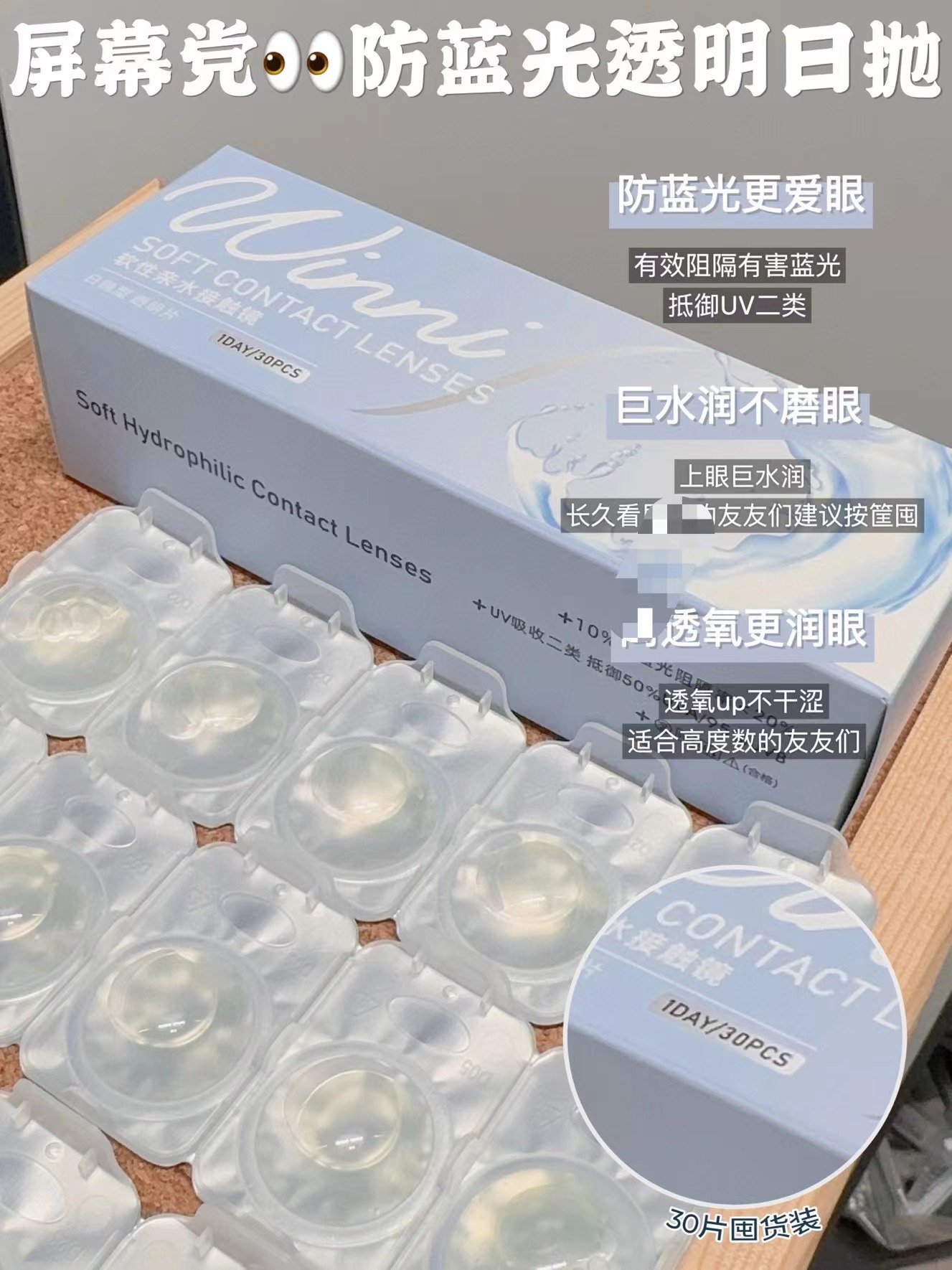 Wiinni日抛·防蓝光透明片·透氧率超国标达24.3dk/t(10片/30片装两种规格)