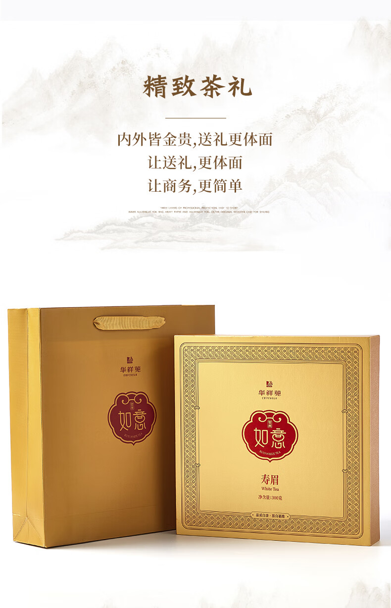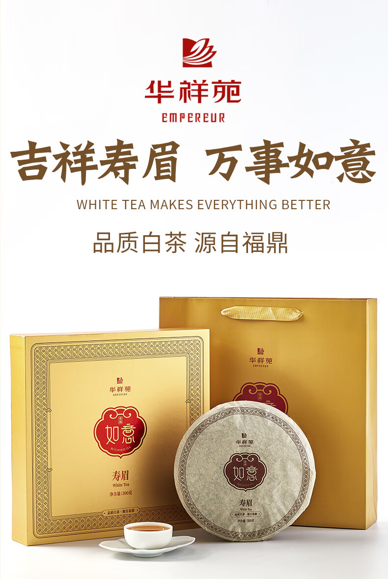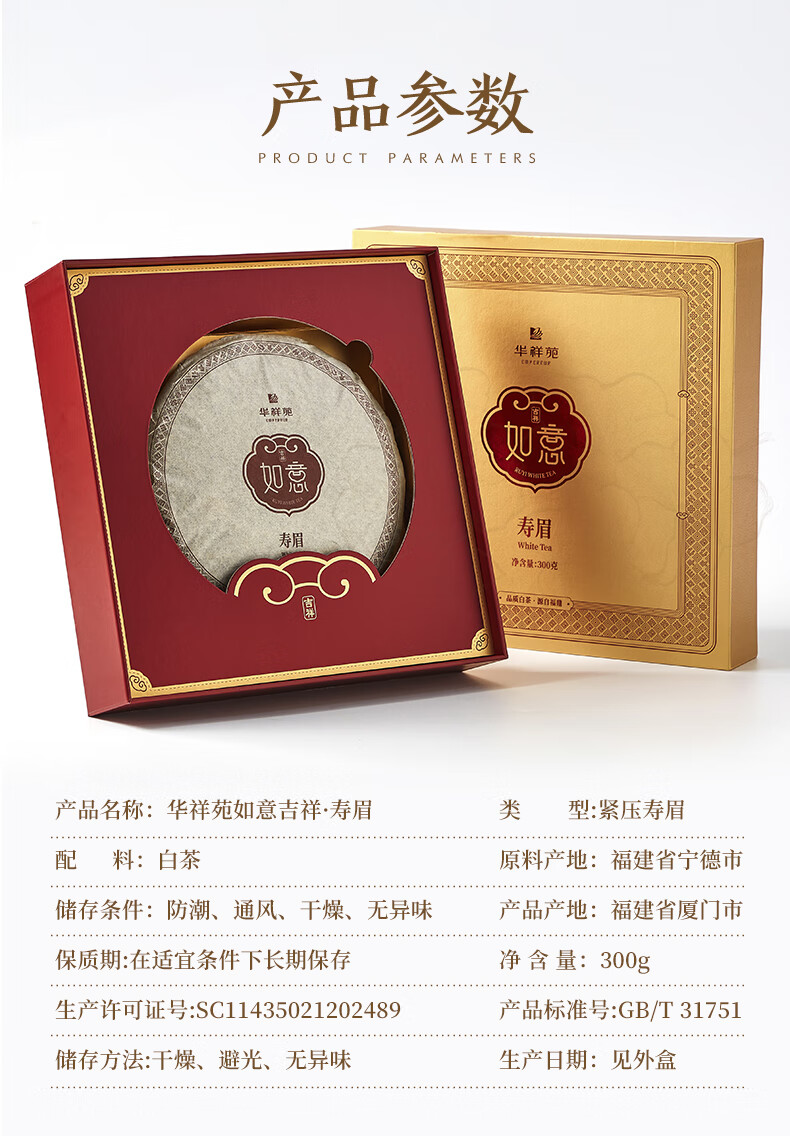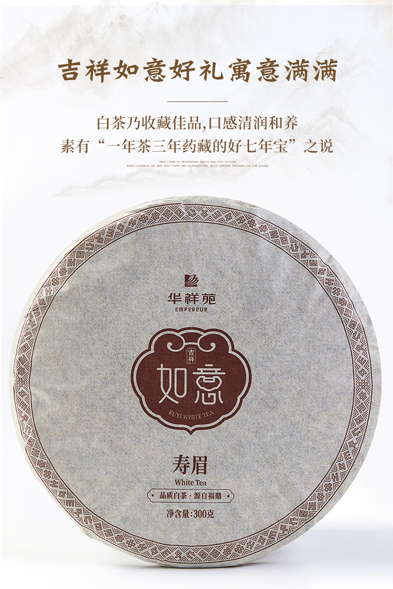 华祥苑 寿眉 福建白茶 如意吉祥 白茶茶饼 茶叶礼盒 300g