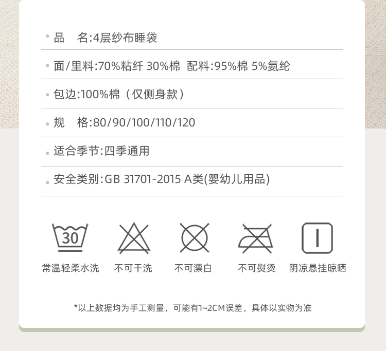 【品牌直供】yikyak四层长袖竹棉纱布睡袋