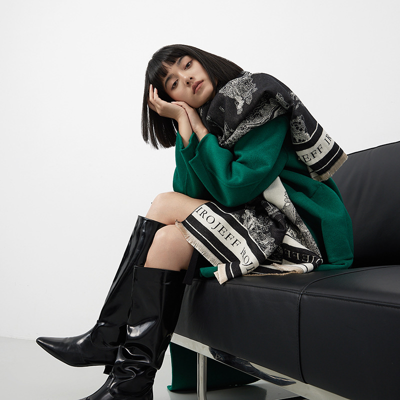 「丽颖同款!四色可选」山水画仿羊绒围巾 女办公室空调房加厚保暖长款潮流围脖配饰