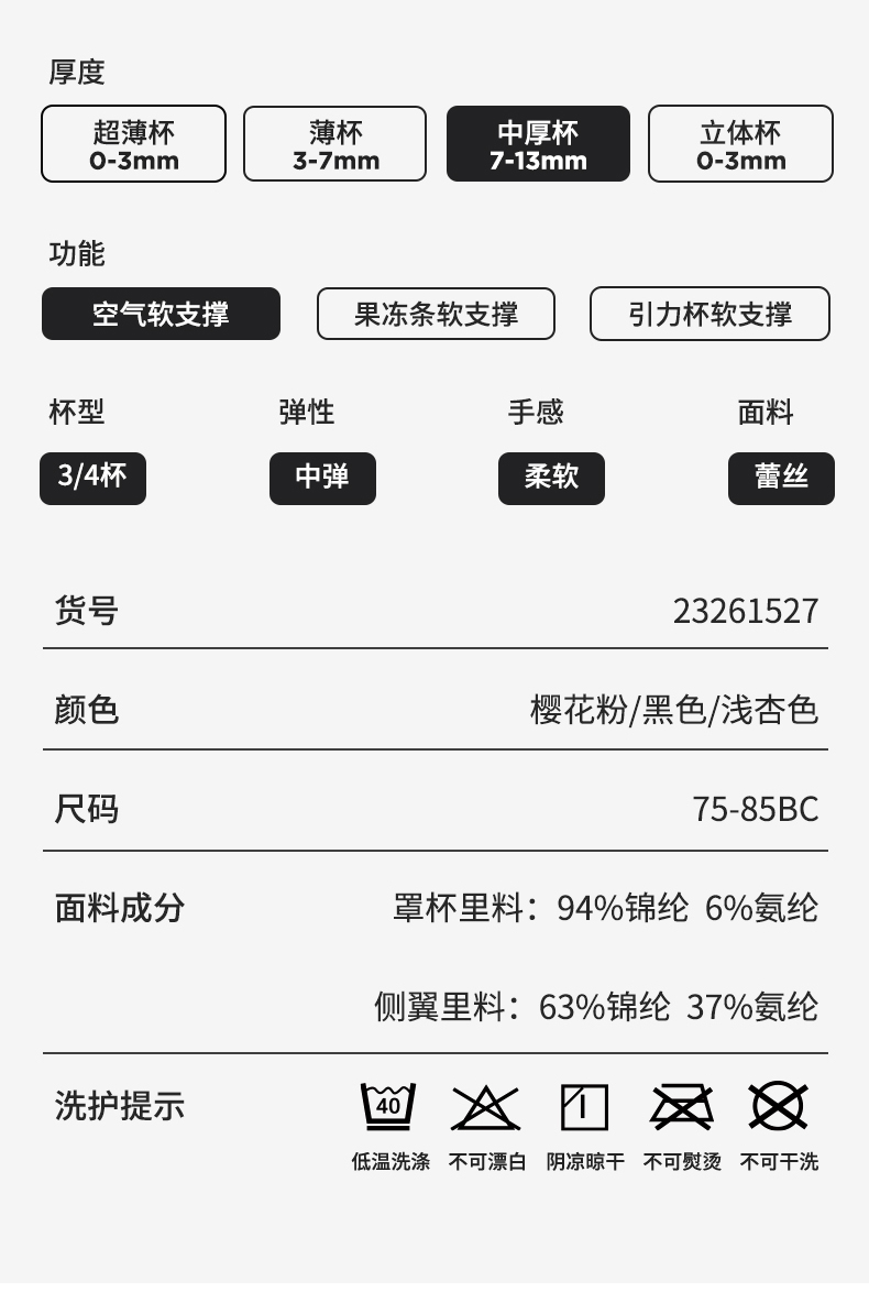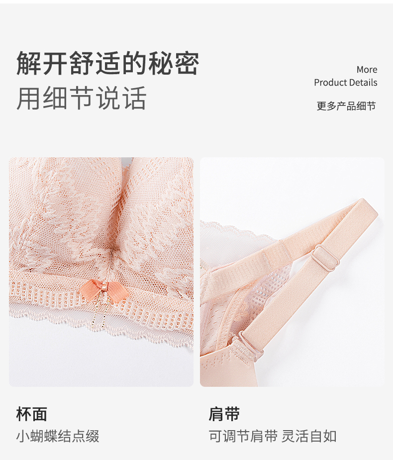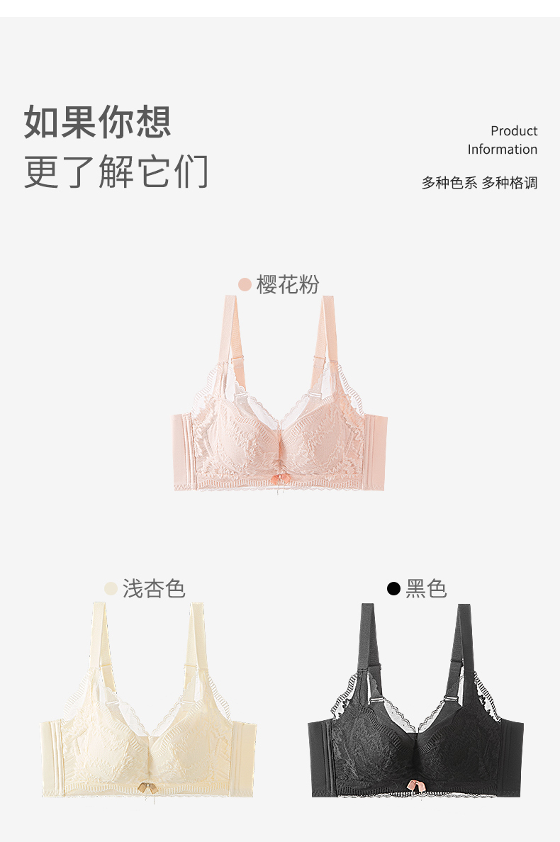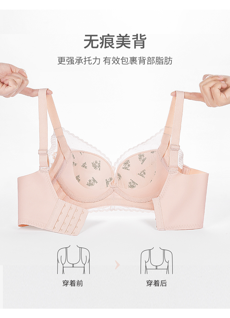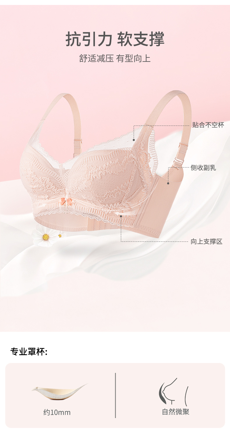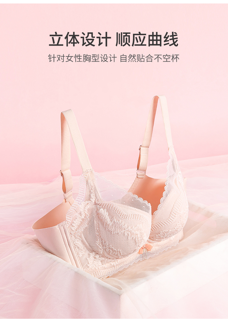 【大胸显小BC杯】熳洁儿 内衣女聚拢收副乳防下垂性感蕾丝文胸无钢圈23261527