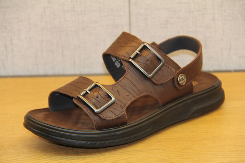 豪行夏季新款10255255真皮露趾软底两用凉鞋潮鞋真皮沙滩鞋凉拖鞋 专柜正品