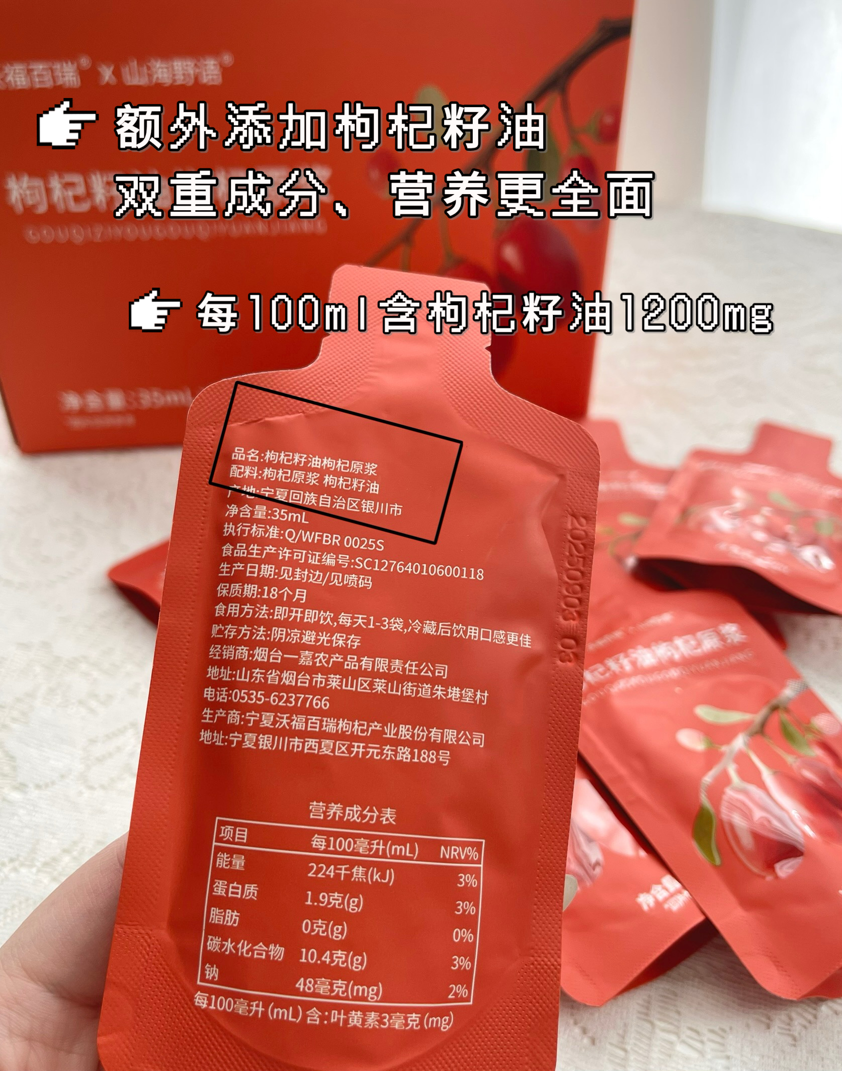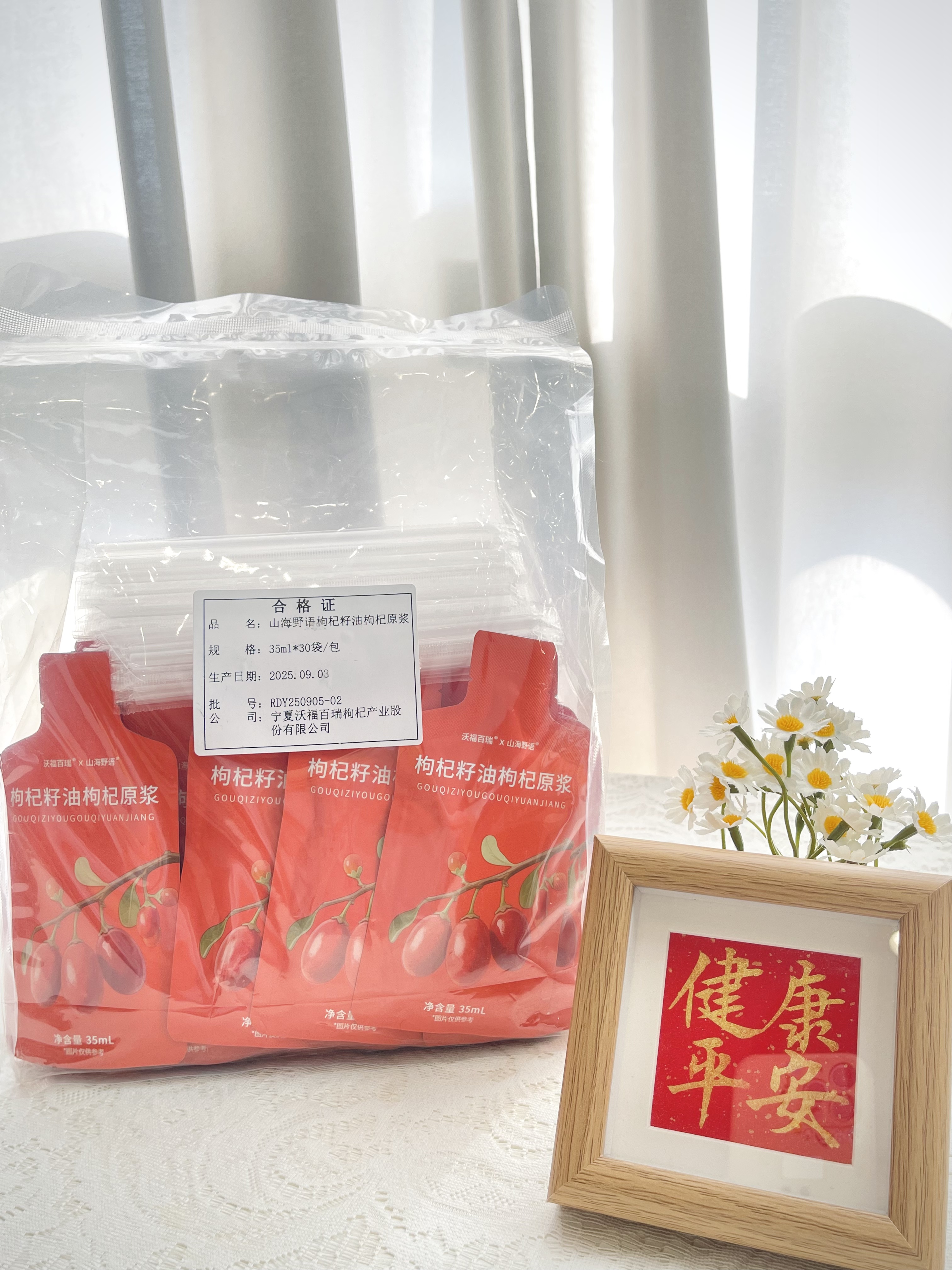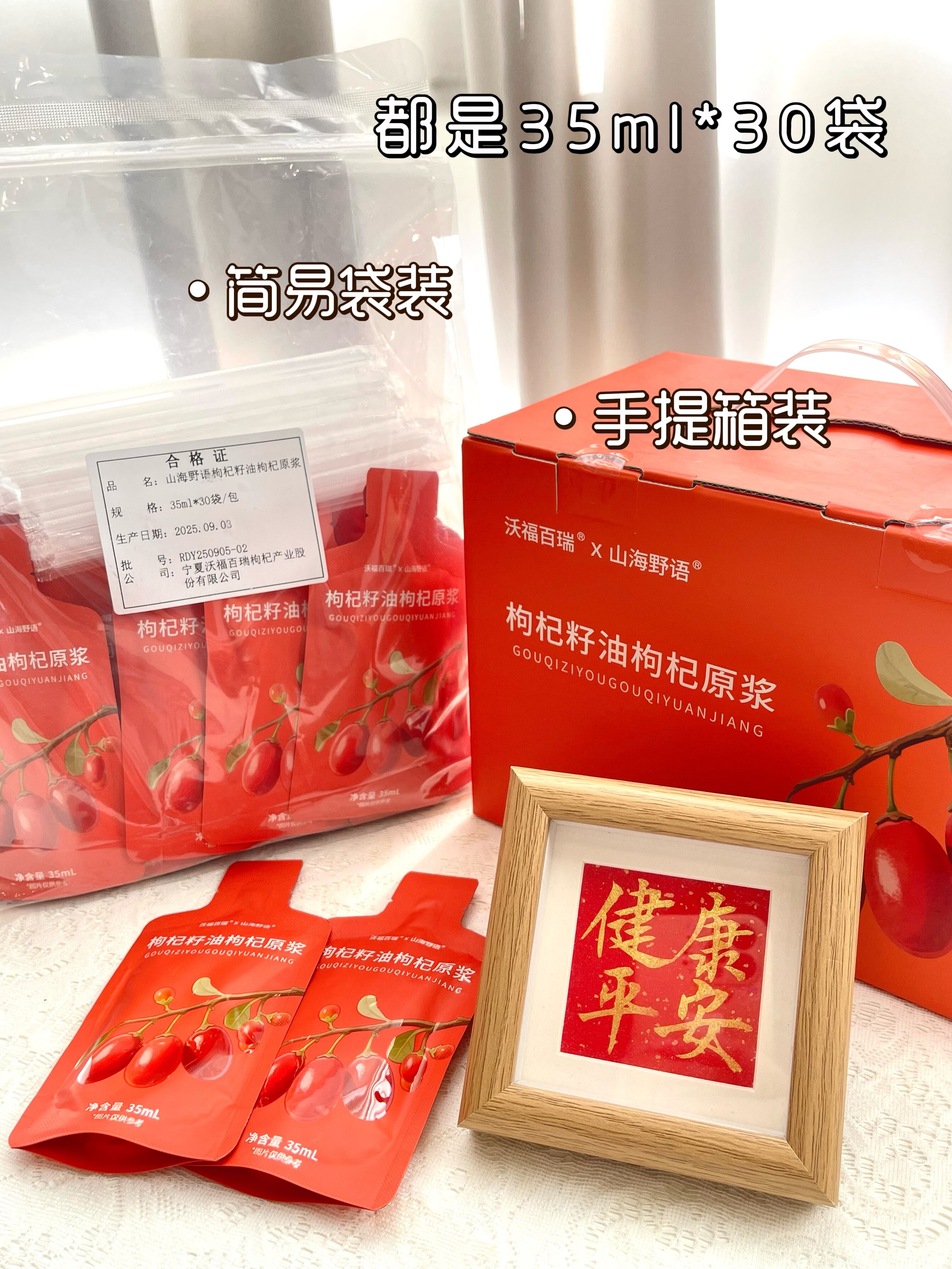 【升级版枸杞原浆】麦麦定制,额外添加了枸杞籽油,营养更高,口感更好,味道更好喝!一箱35mI袋*30袋!首发活动下单就送2袋试喝体验,大家可以放心尝试感受下!