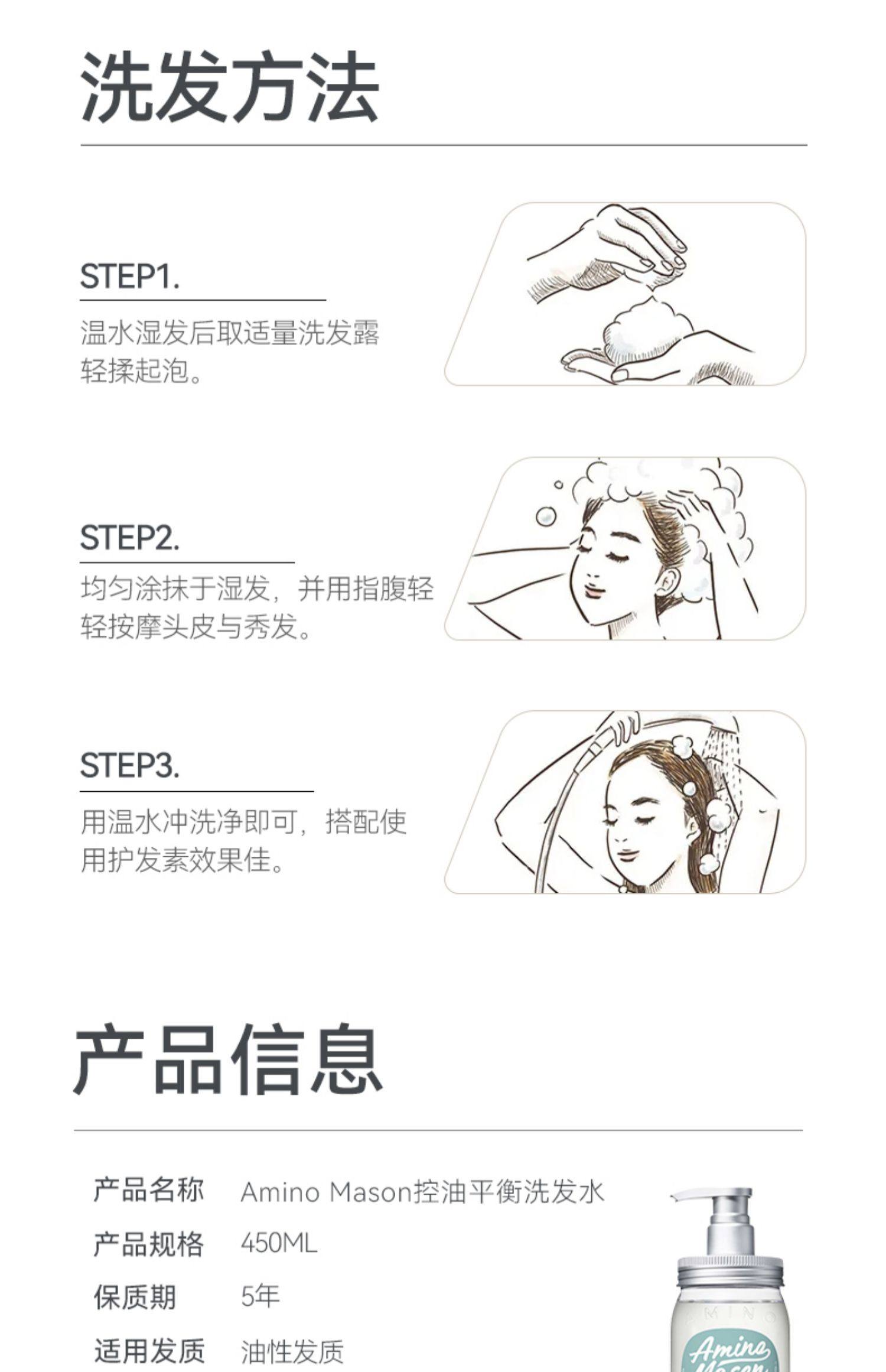 阿蜜浓梅森 氨基酸洁净控油平衡洗发水450ml