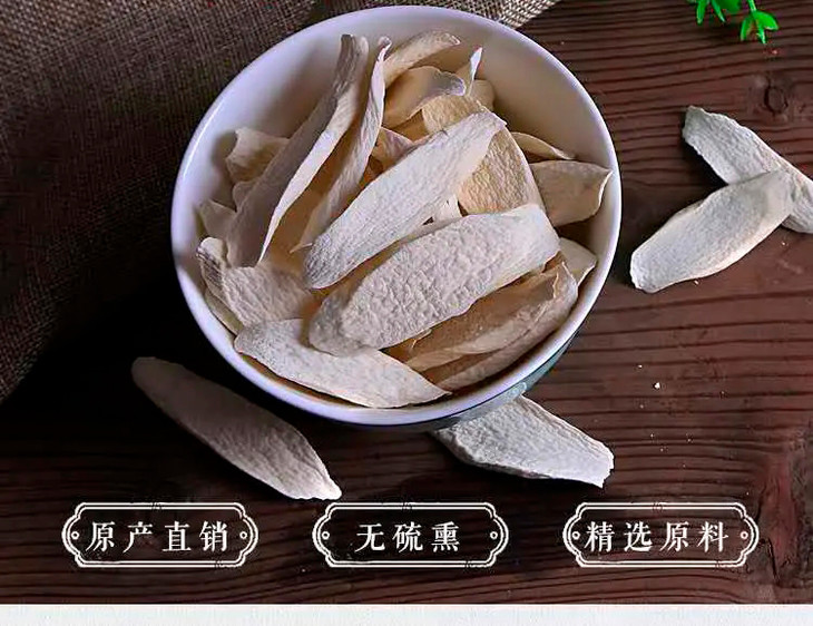 【温馨提示】通过阳光直晒干制,山药片颜色淡白、微黄,少部分表面氧化呈淡黑色,都属于正常现象,请放心食用。