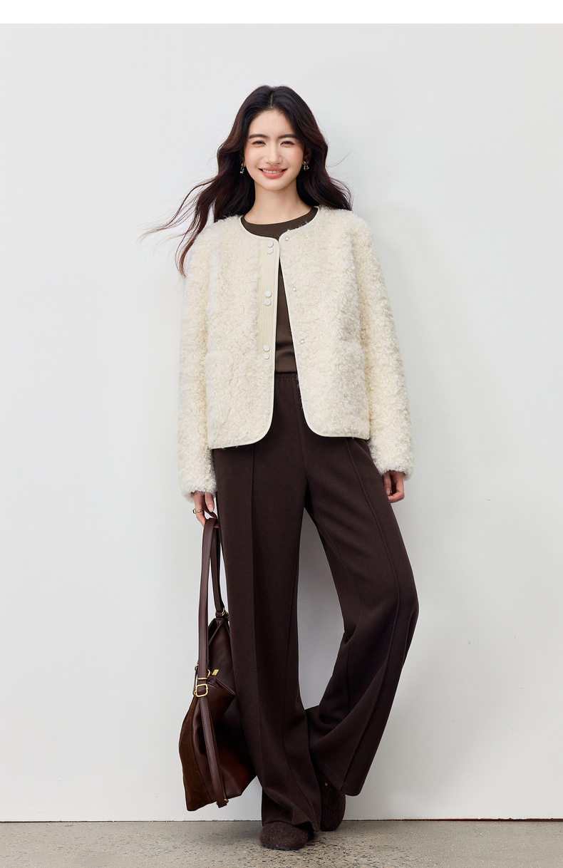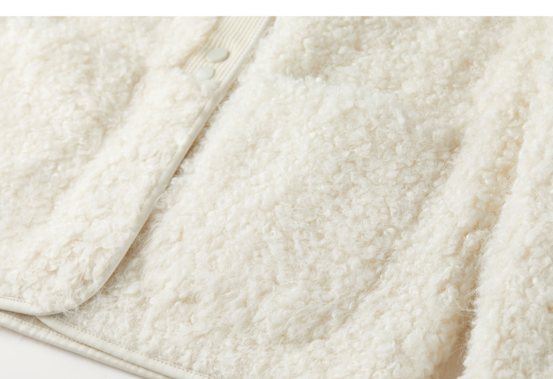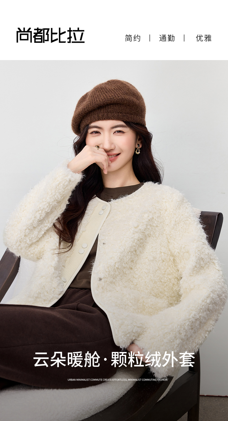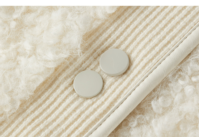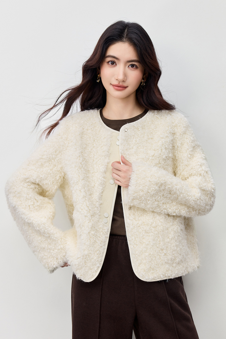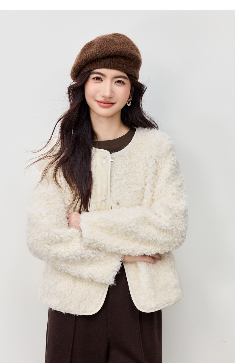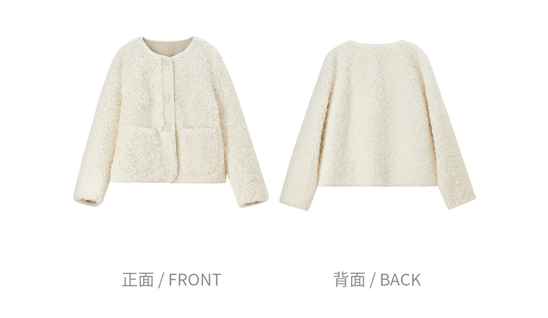 【内购】【保暖不臃肿】优雅通勤圆领肌理感门襟双按扣皮绒颗粒绒外套-W54PD4242