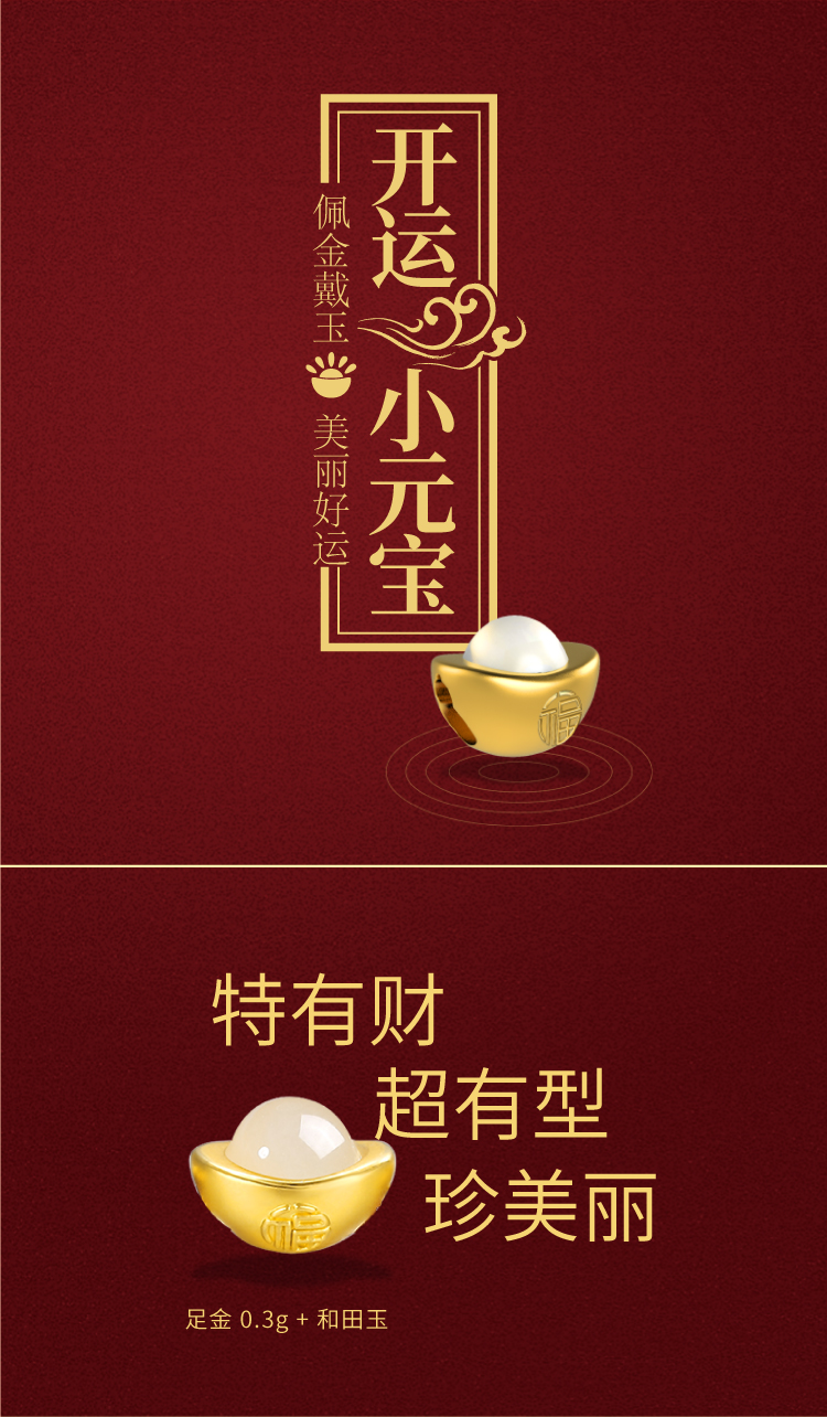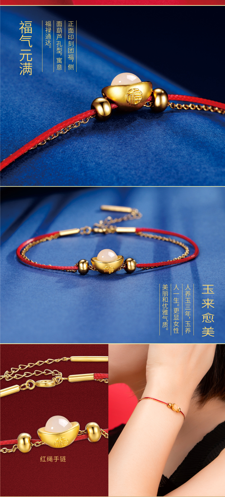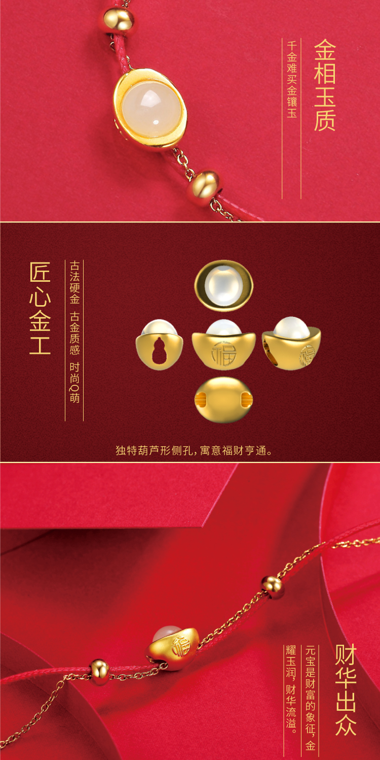 《金玉小元宝》金镶玉手链 女款黄金镶嵌和田玉 尾链可调节 送女生送妈妈长辈礼物