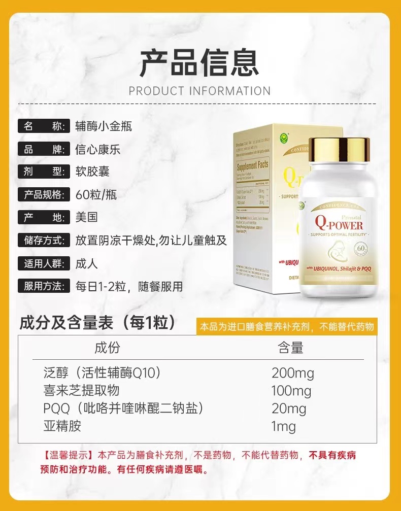 信心康乐还原型辅酶q10Q孕安复合胶囊60粒