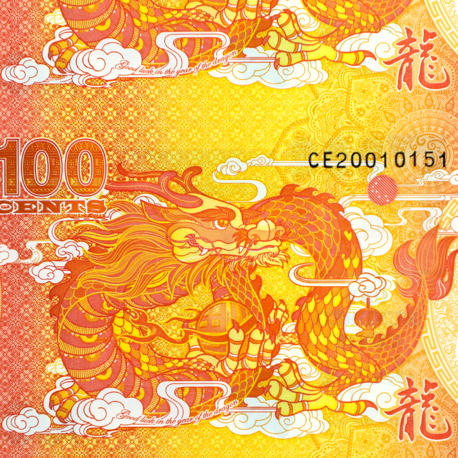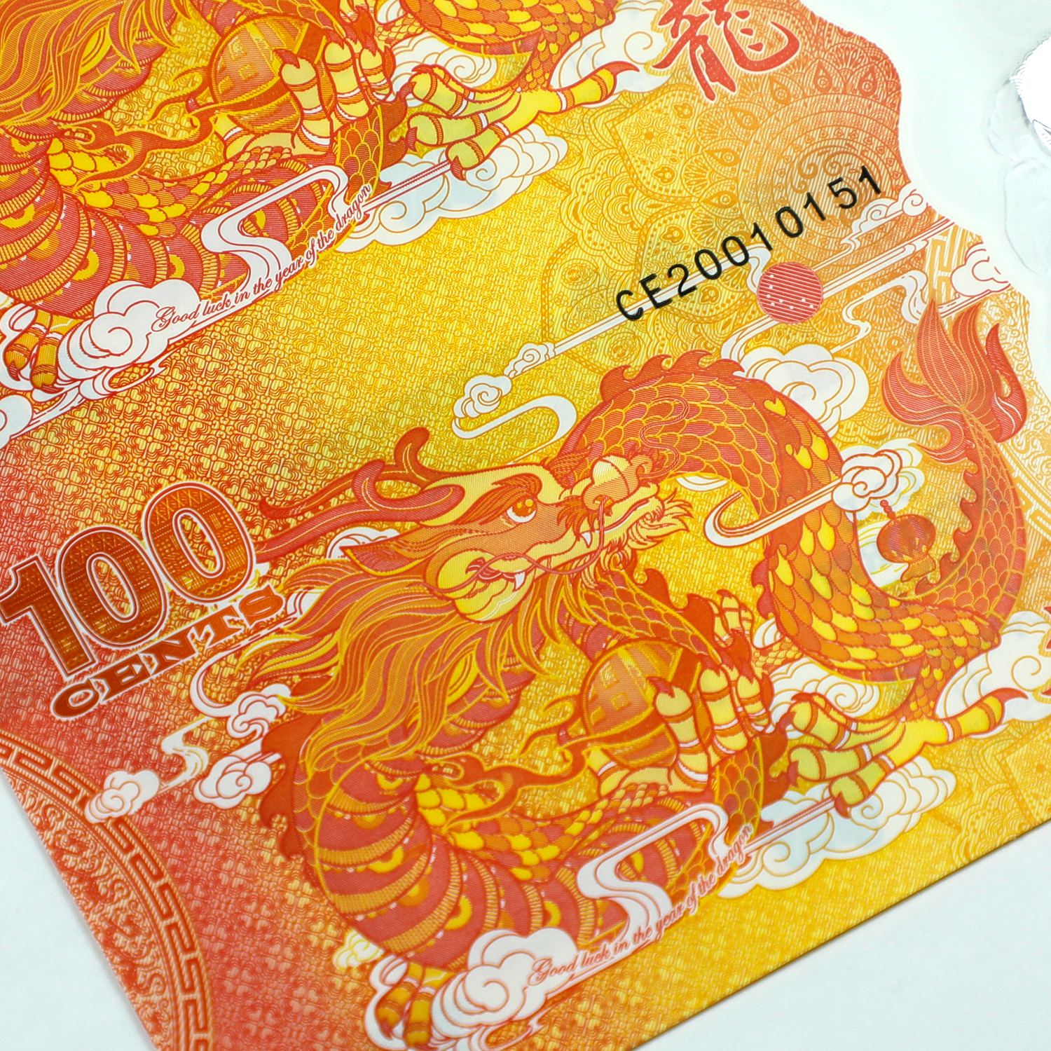 【吉祥号88888开头】2024斐济龙年塑料纪念钞!全新100分!