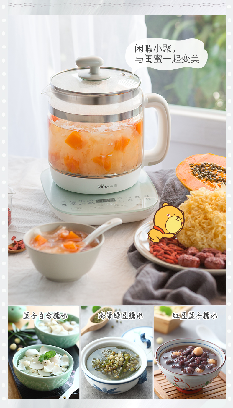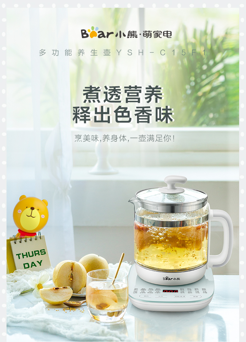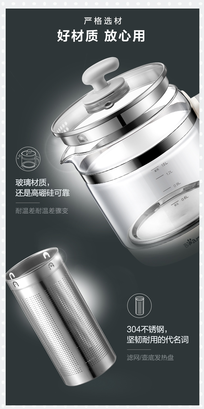 小熊(Bear) 养生壶电水壶烧水壶多功能煮茶器玻璃花茶壶 智能保温1.5L YSH-D15T3