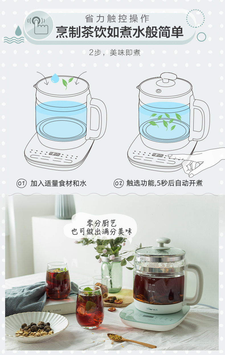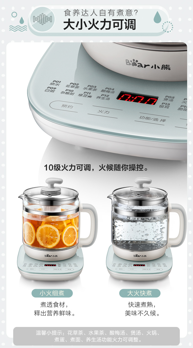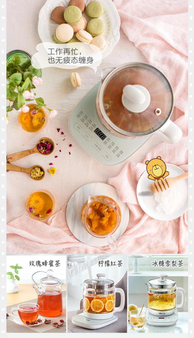 小熊(Bear) 养生壶电水壶烧水壶多功能煮茶器玻璃花茶壶 智能保温1.5L YSH-D15T3