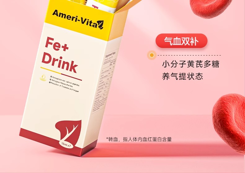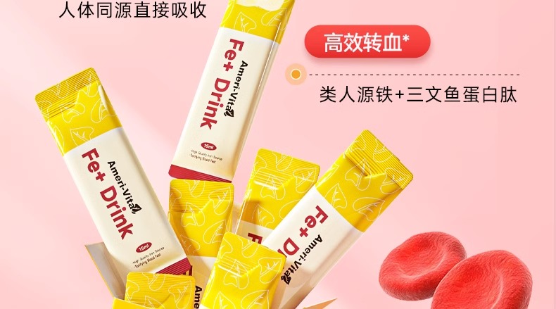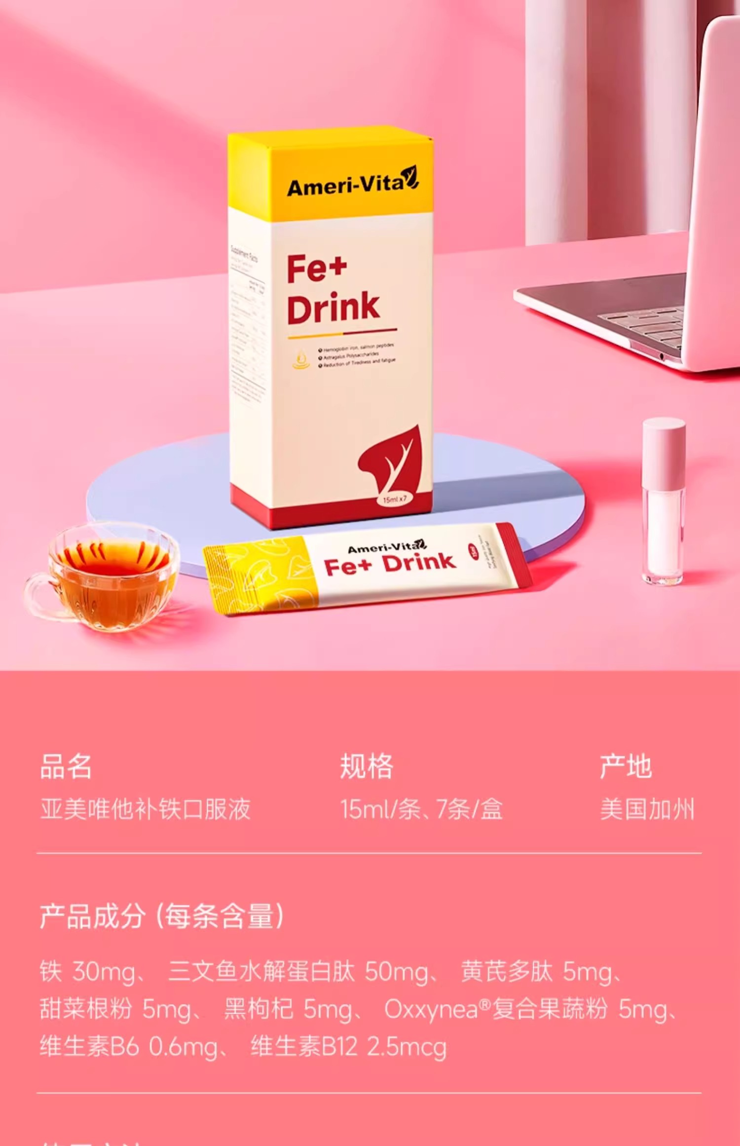 Ameri vita 补铁血剂孕妇补铁贫血女性经期便携铁剂铁元素口服液饮(7条)/盒