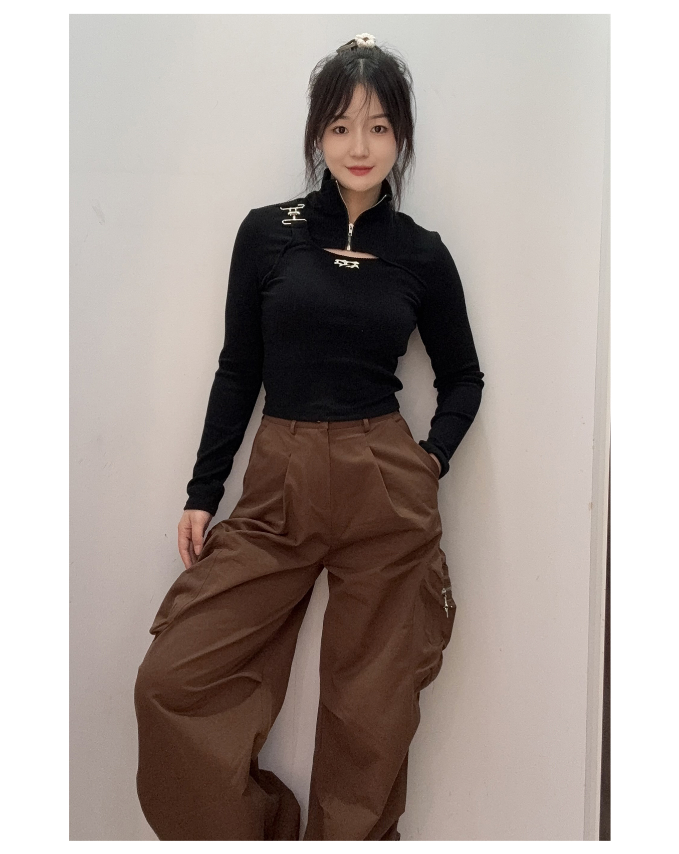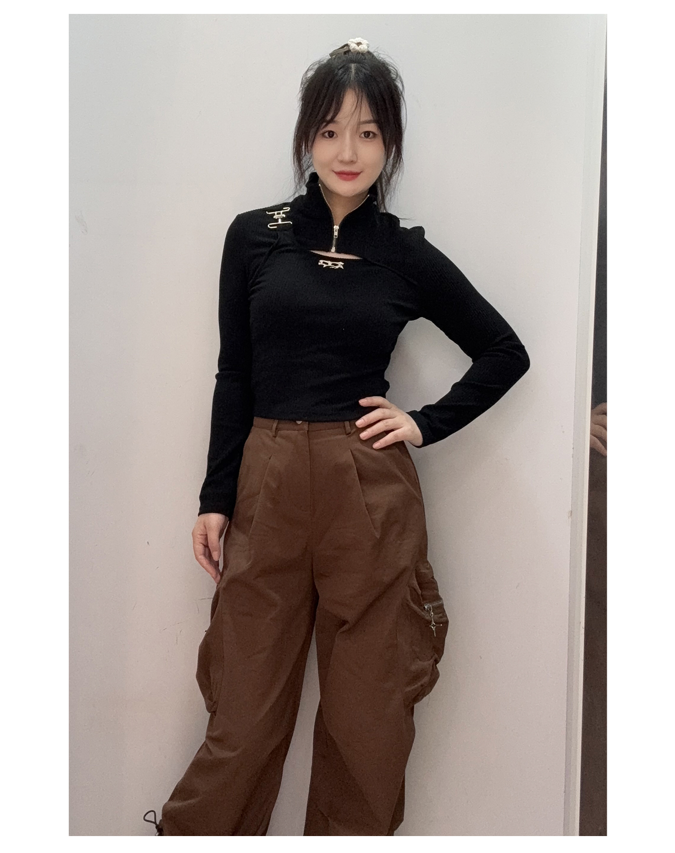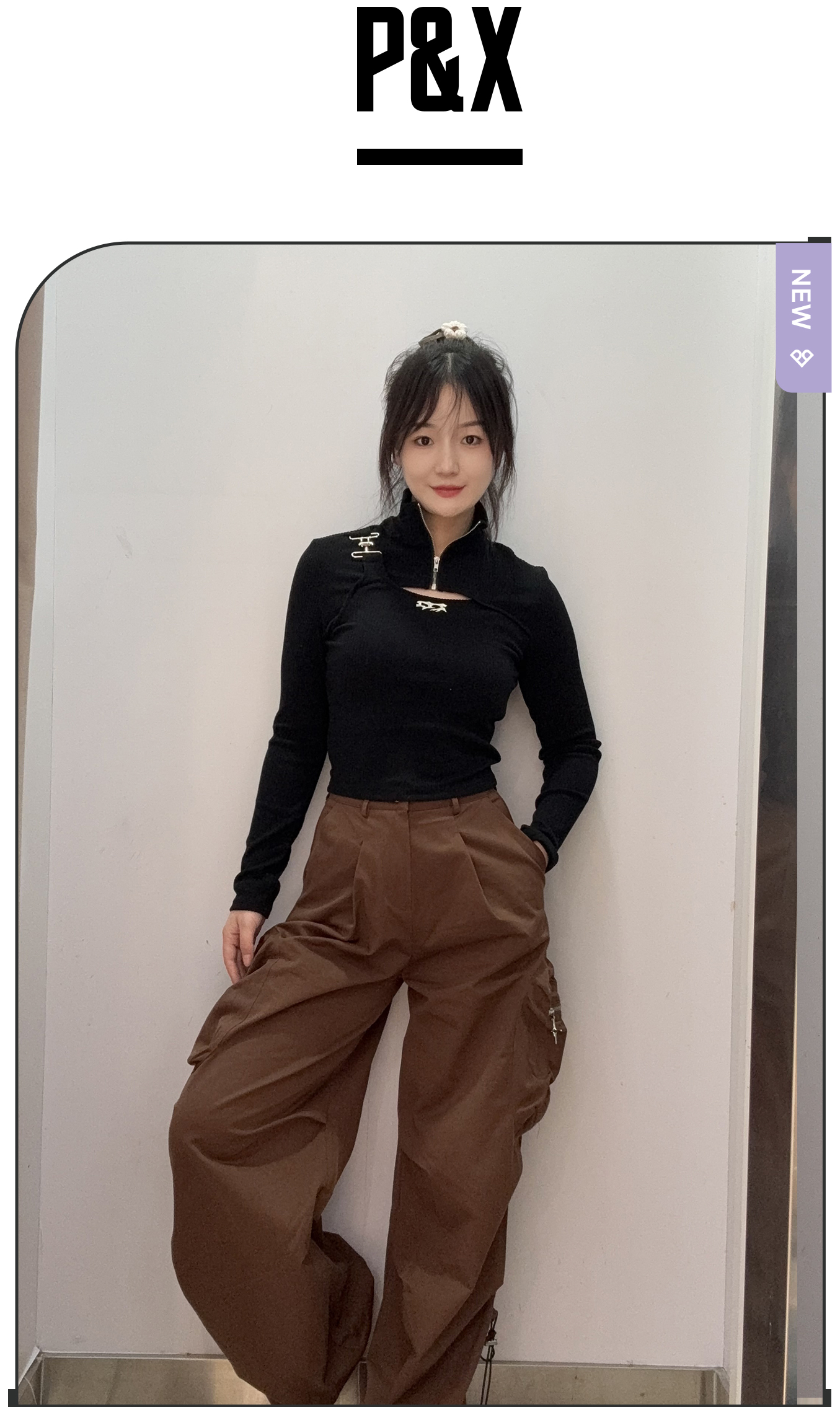P&X设计师女装时尚长袖修身立领ins半高领T恤 823102296 黑色