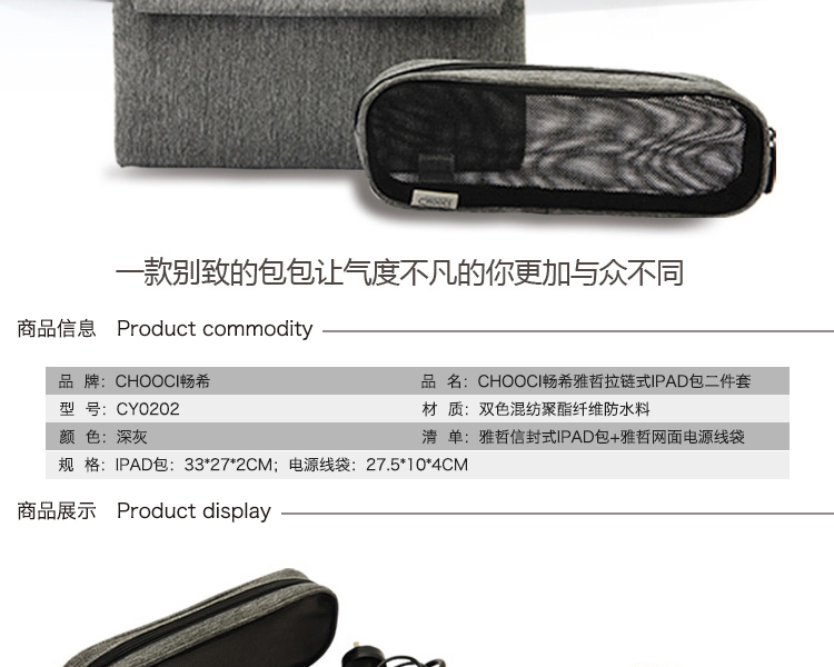 CHOOCI雅哲拉链式平板电脑多用二件套CY0202箱包行旅收纳
