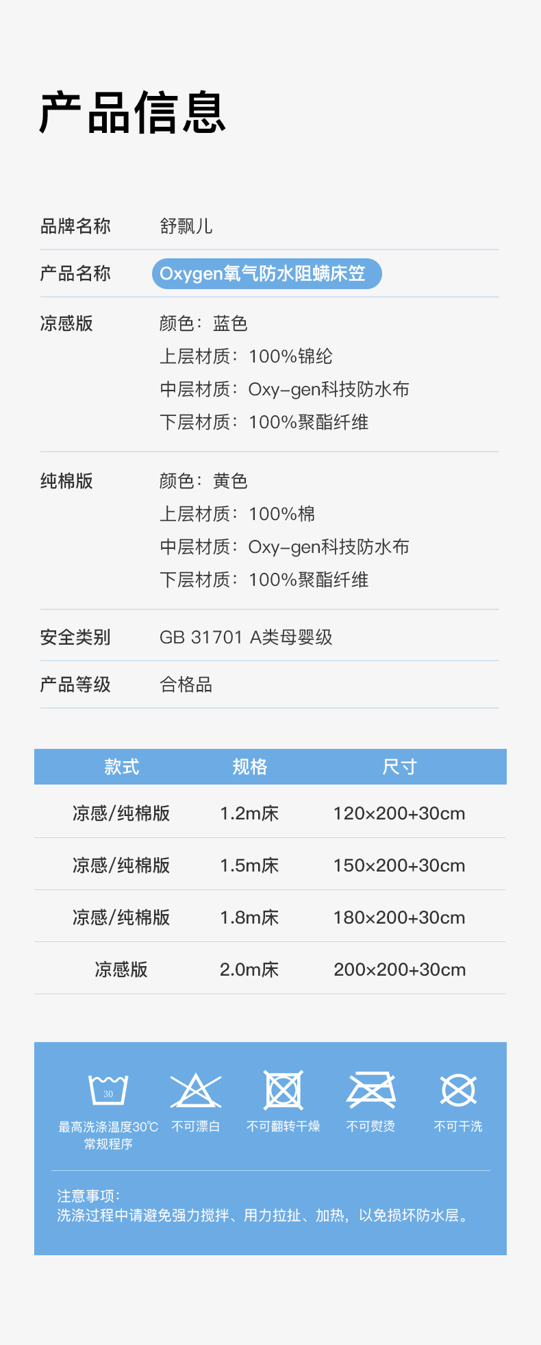【混知推荐】舒飘儿-Oxygen氧气防水床笠阻螨纯棉四季可用